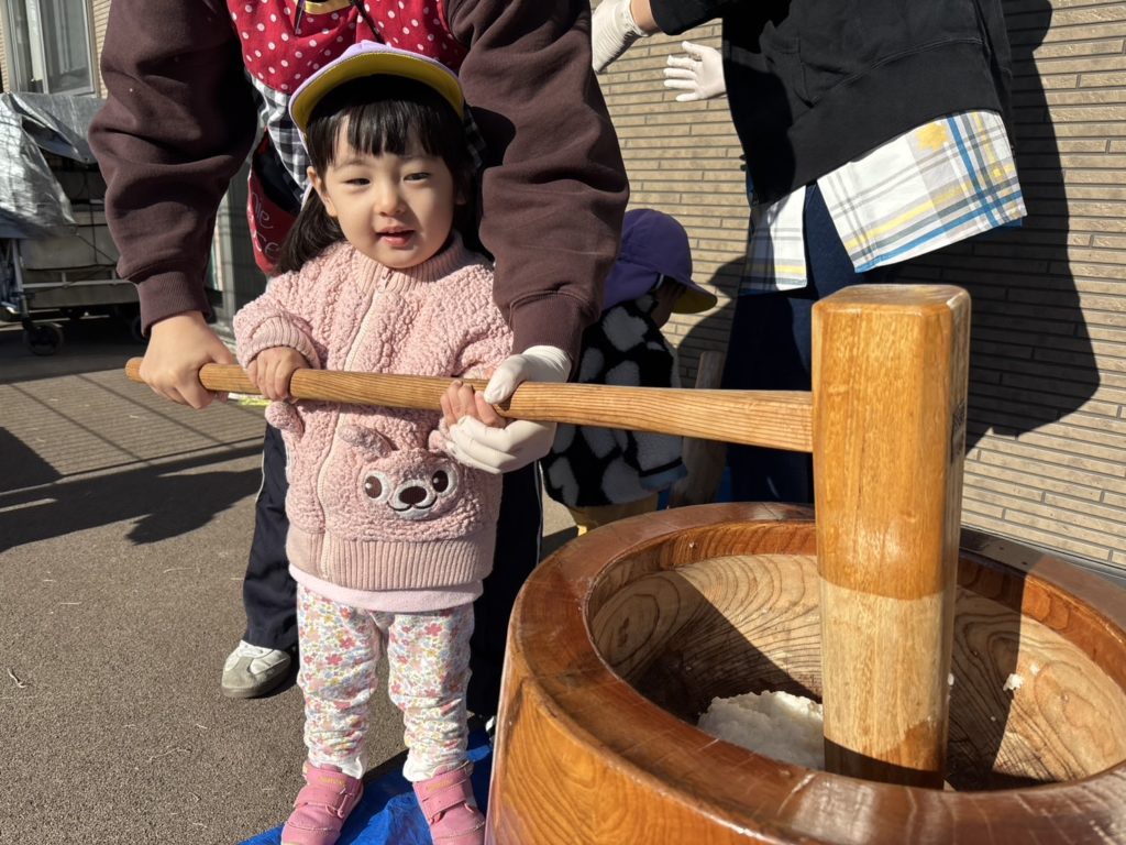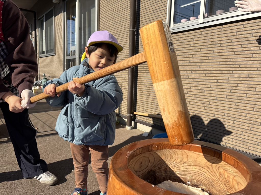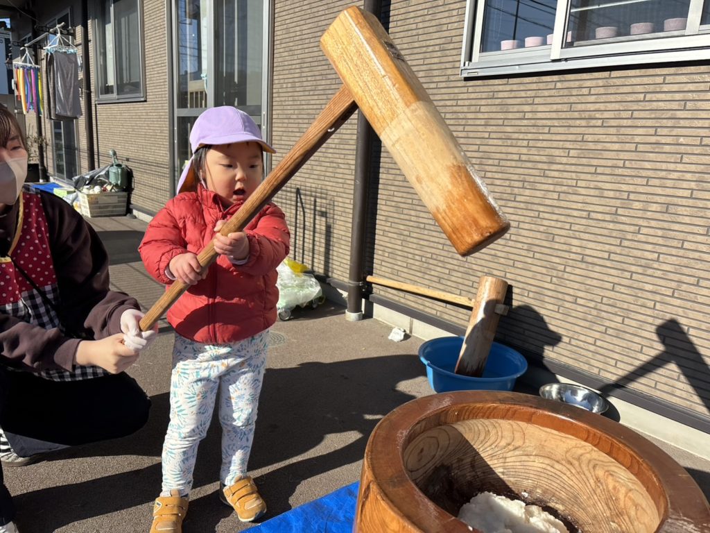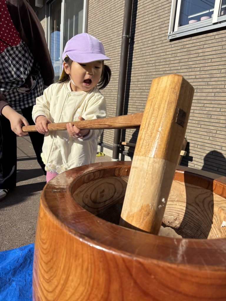 今日はクラスごとに順番でお餅つきをしました😊