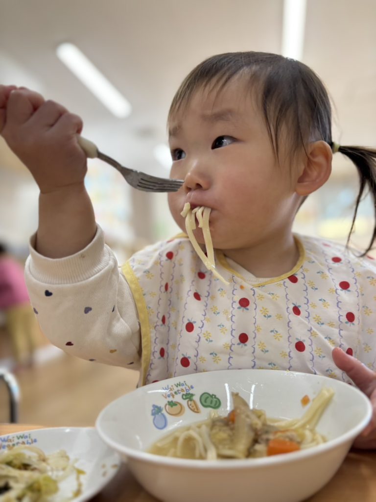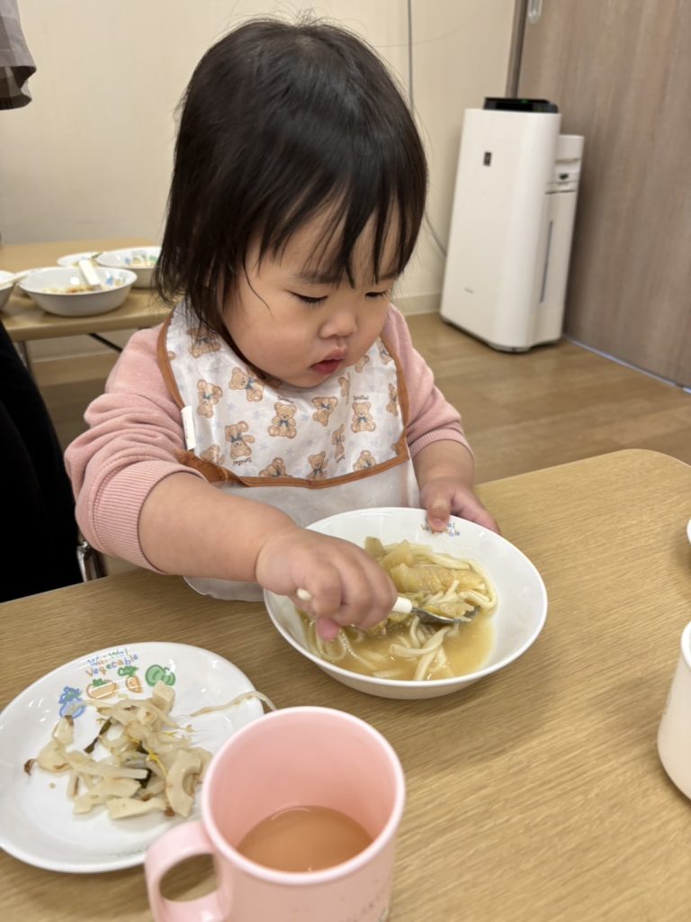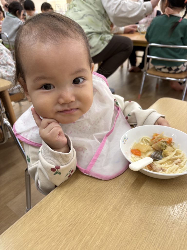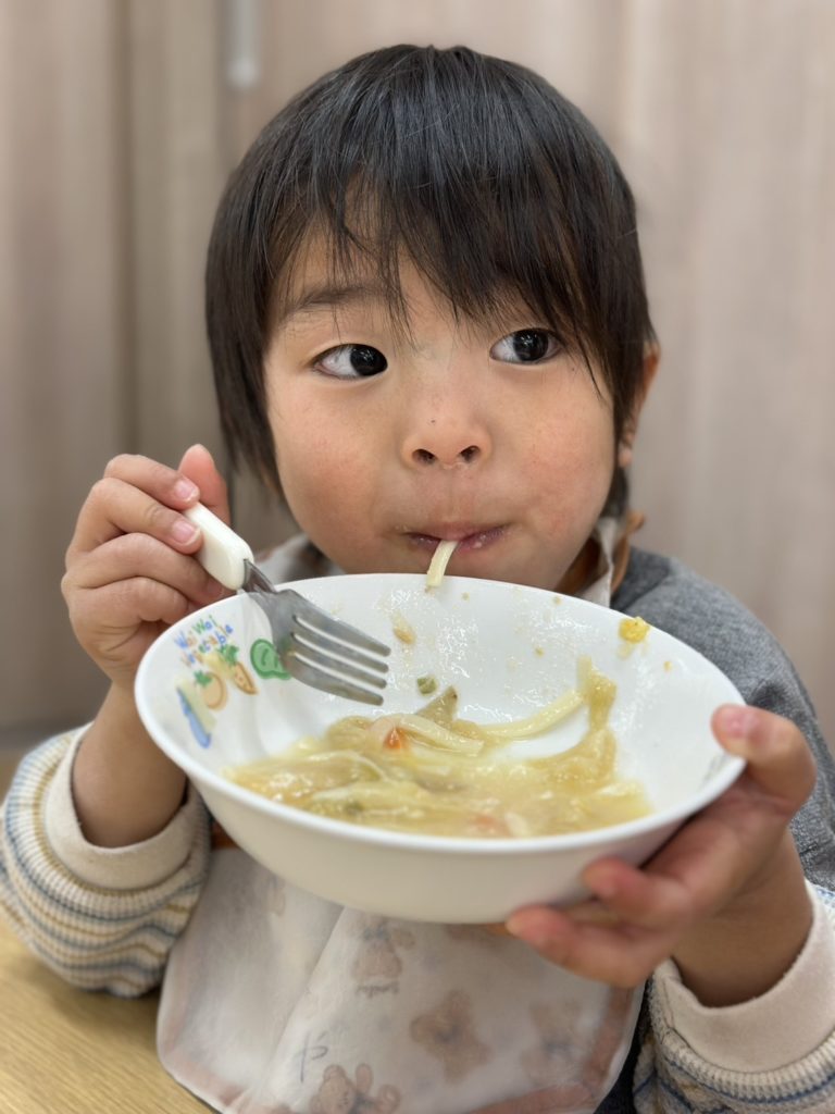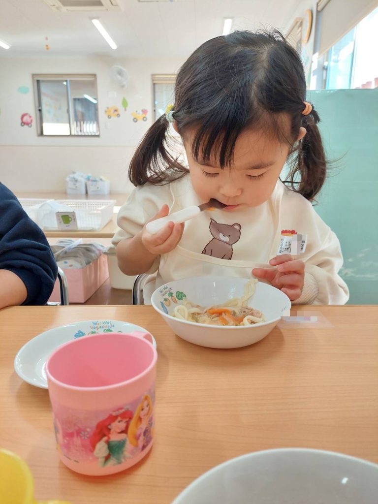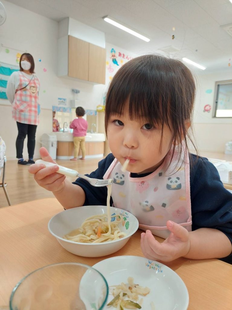 そして今日の給食はみんな大好きなうどん!上手につるつるっと食べていましたよ😋