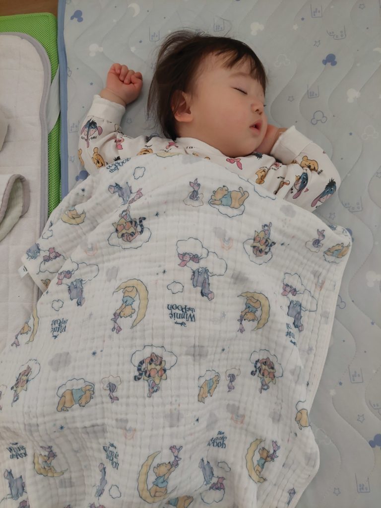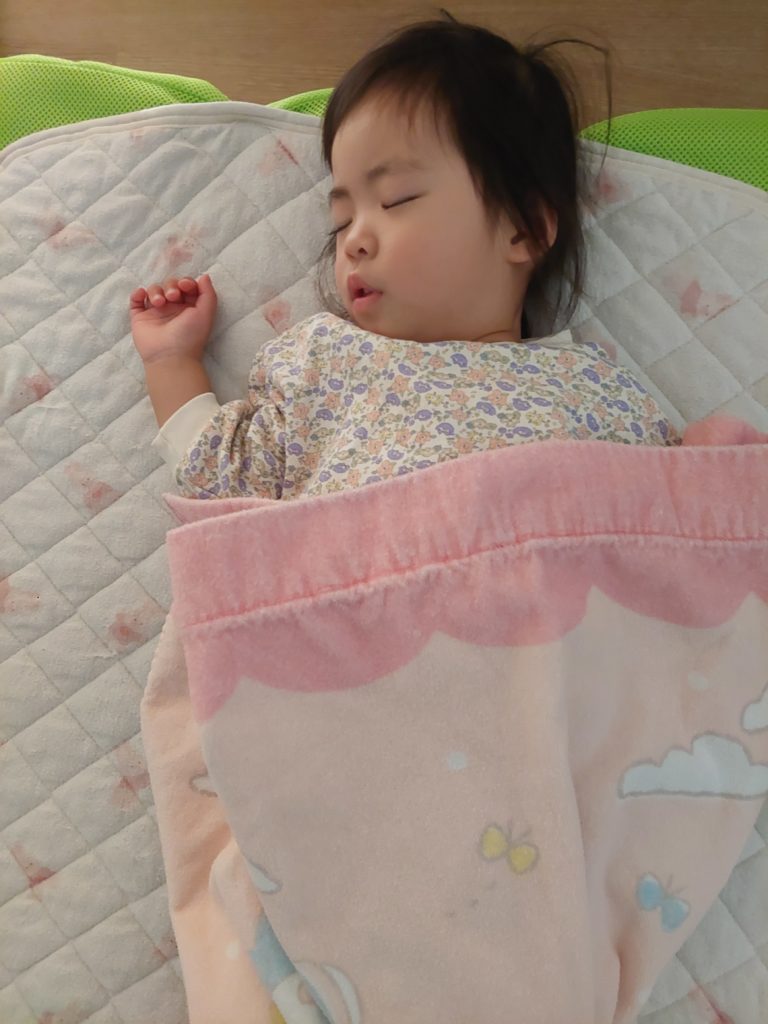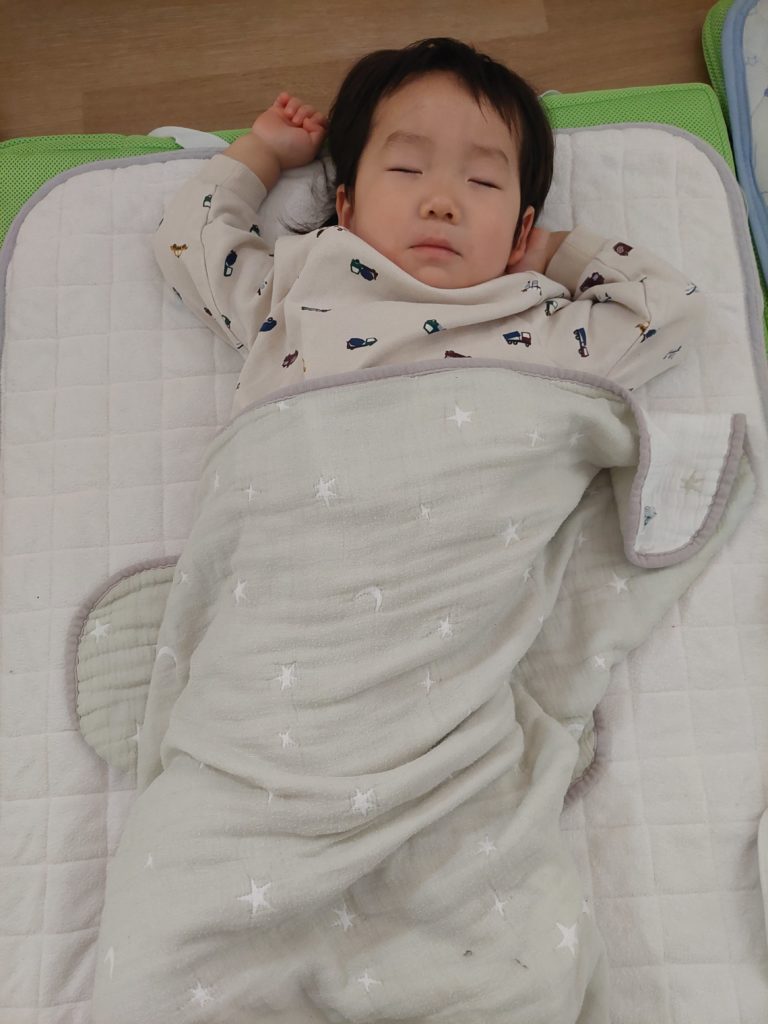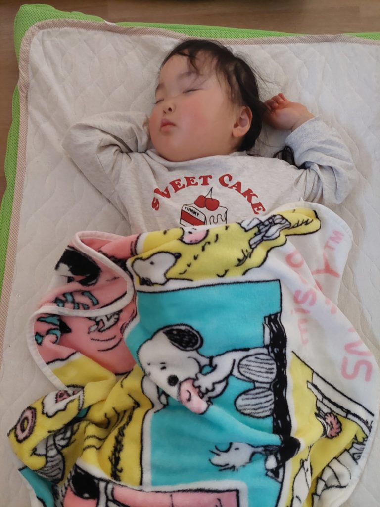 園庭でたくさん遊んだので、お昼寝は布団に入るとグッスリでした‼️