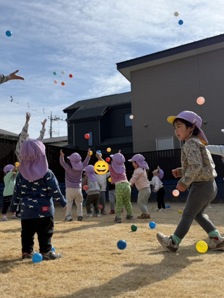 かけ声に合わせて、みんなで上にボールを投げてみました🎶