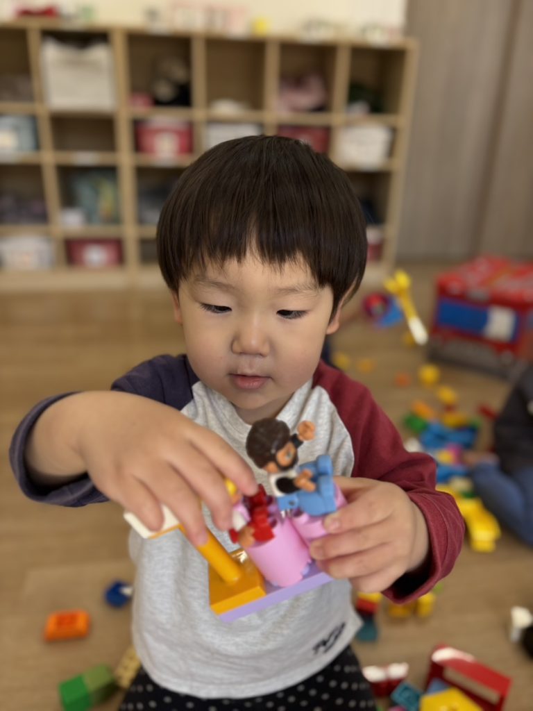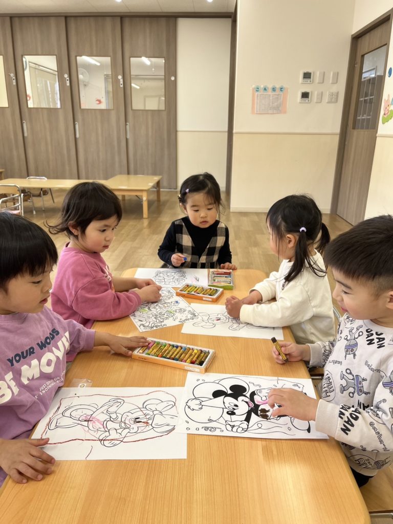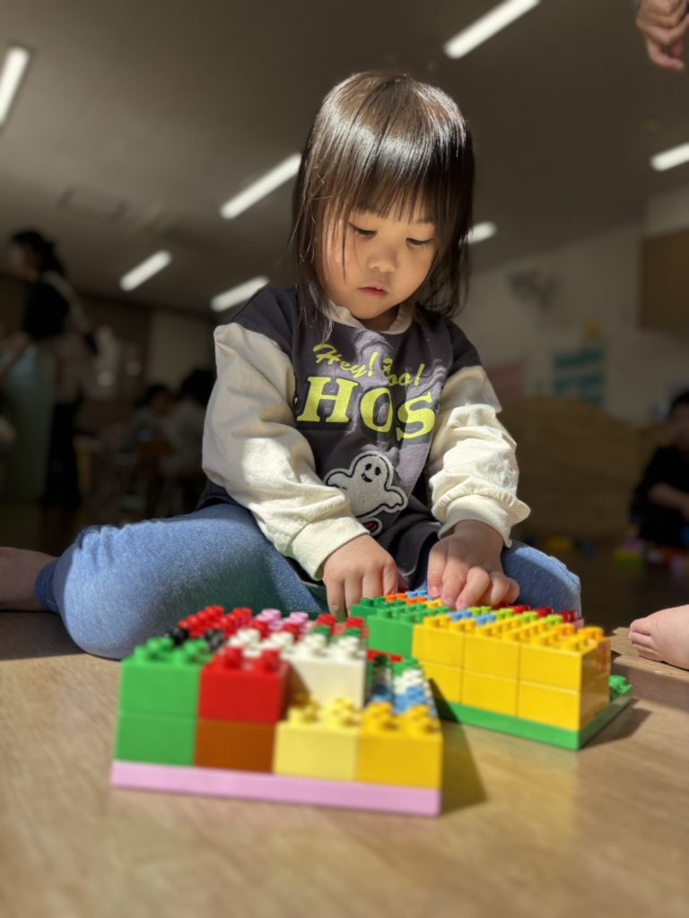 その後は室内で遊びました!塗り絵・シール貼りコーナーとブロックコーナーに分かれて遊びました!自分たちで好きな方を選び楽しみましたよ☺️