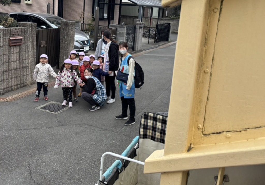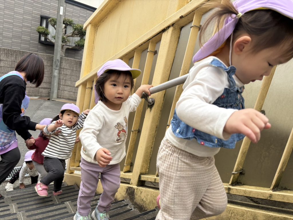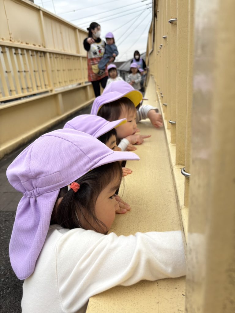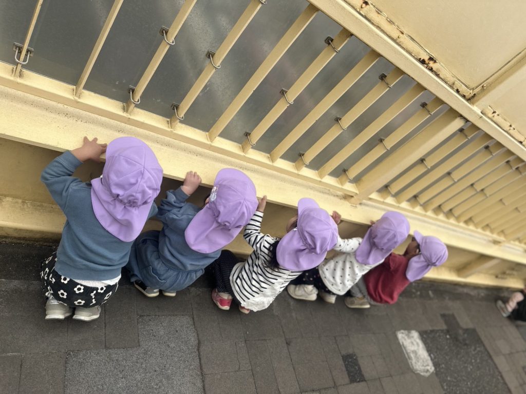 園庭で少し遊んだ後、歩道橋までお散歩へ🎵
