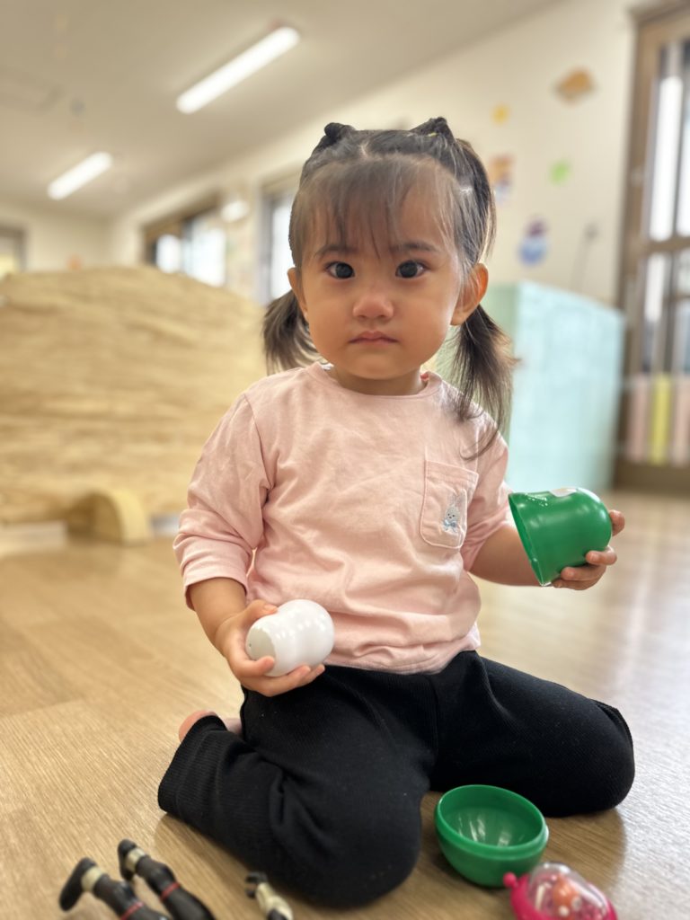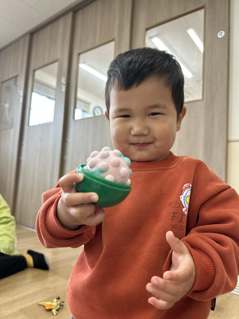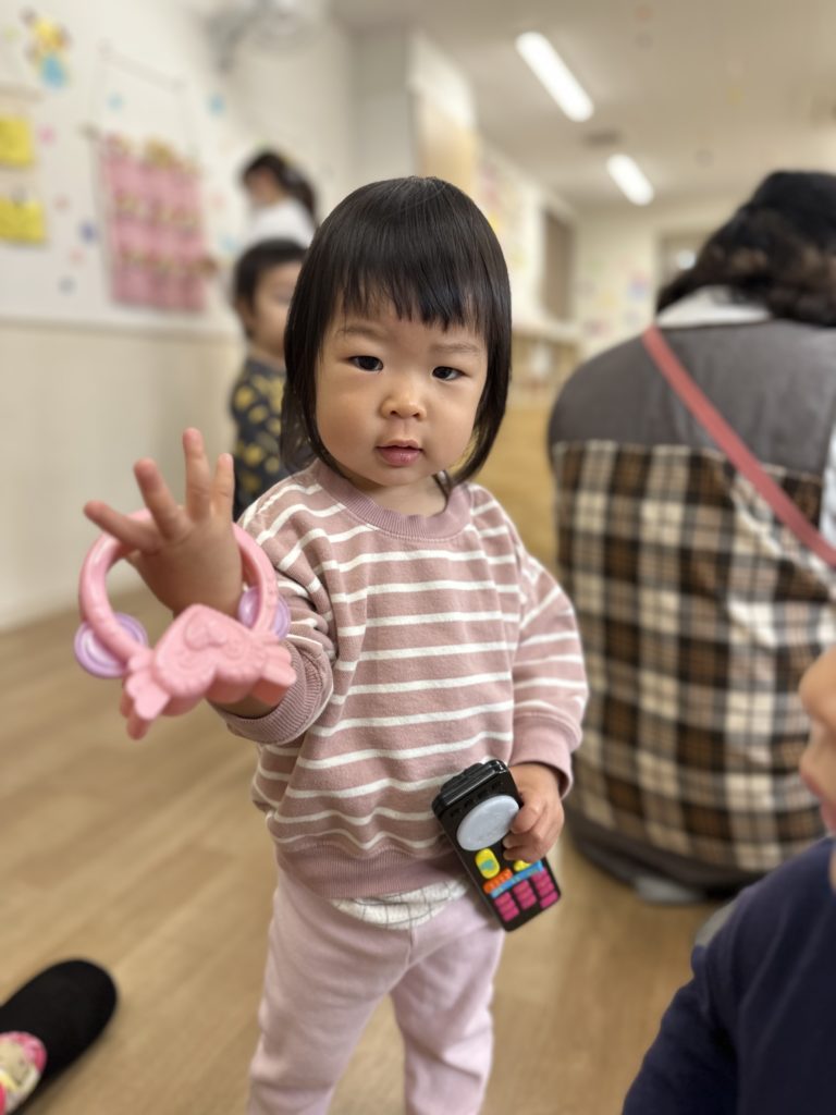 ママたちから離れて、不安そうにしたり、泣いてしまったりする様子も見られましたが、落ち着いて遊べる時間もありました😊