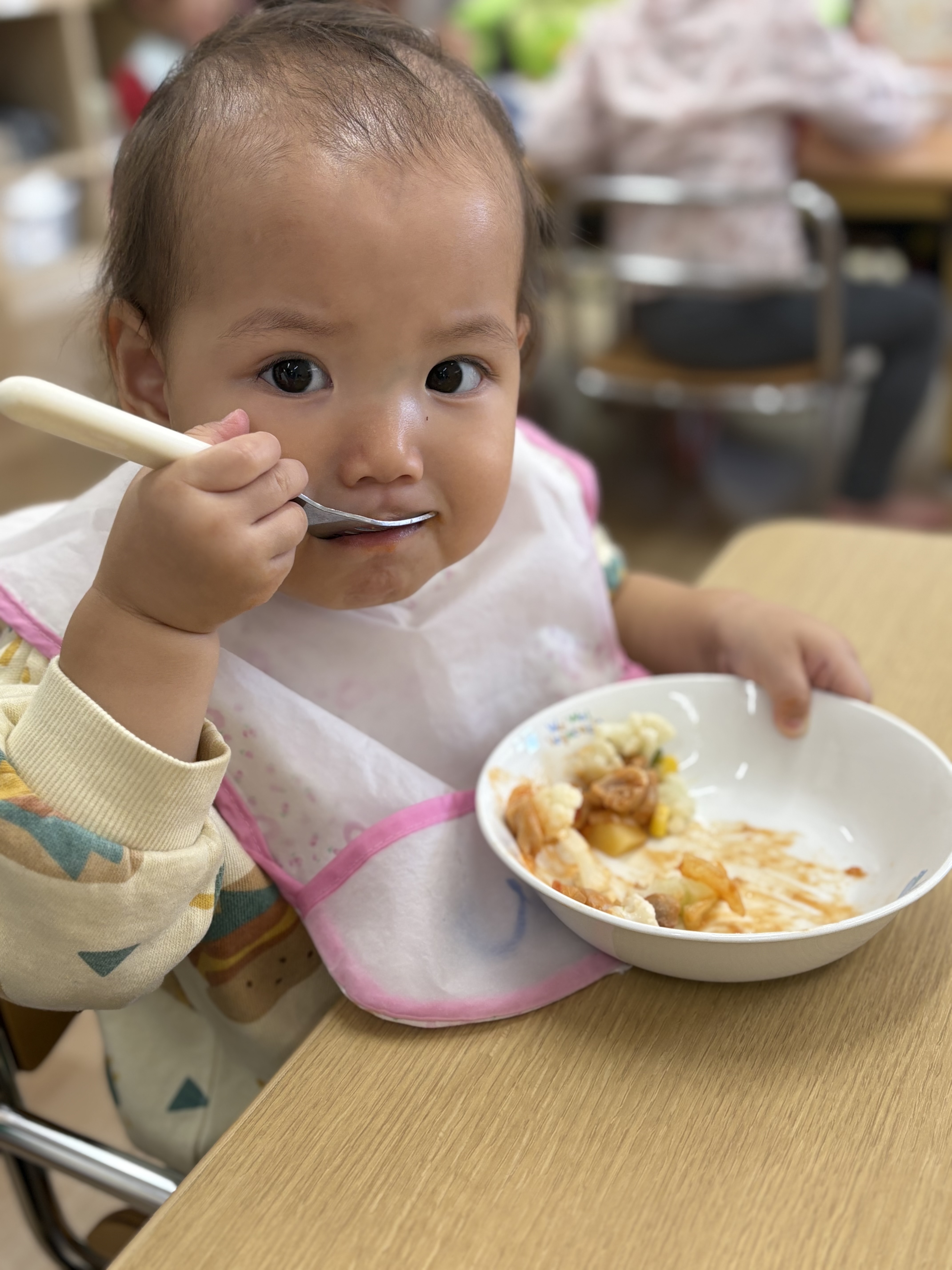 今日は園庭でたっぷり遊びました!なので、ご飯をもりもり食べるお友だちでした!!