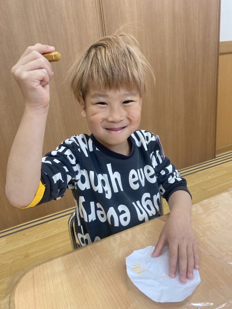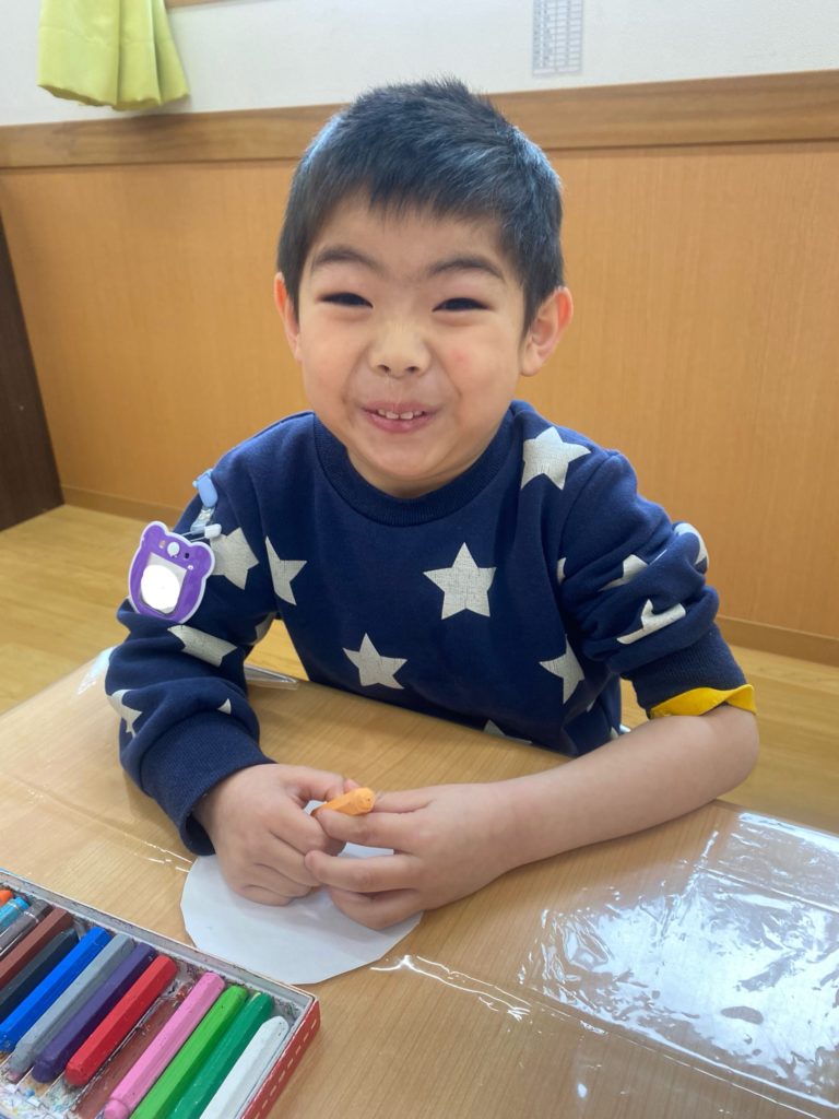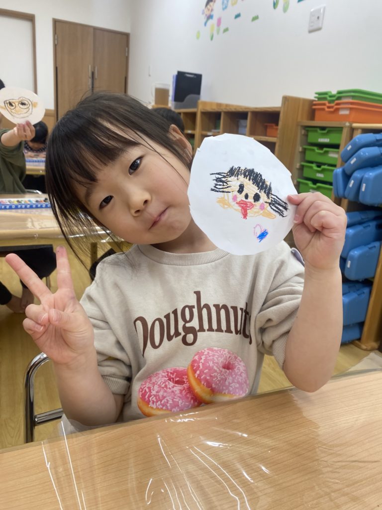 節分の会がありました! 各クラスで作った鬼のお面をみんなの前で紹介したり、節分の歌やクイズを楽しみました😊 最後には乳児クラス、幼児クラスに分かれて豆まきもしました!