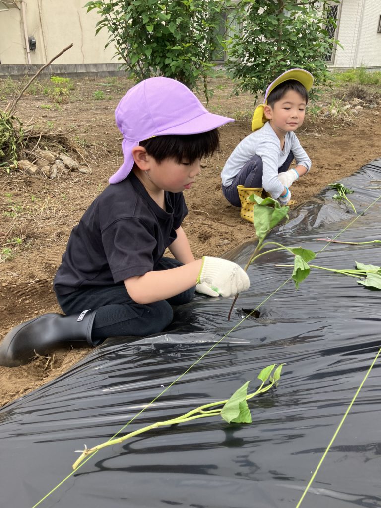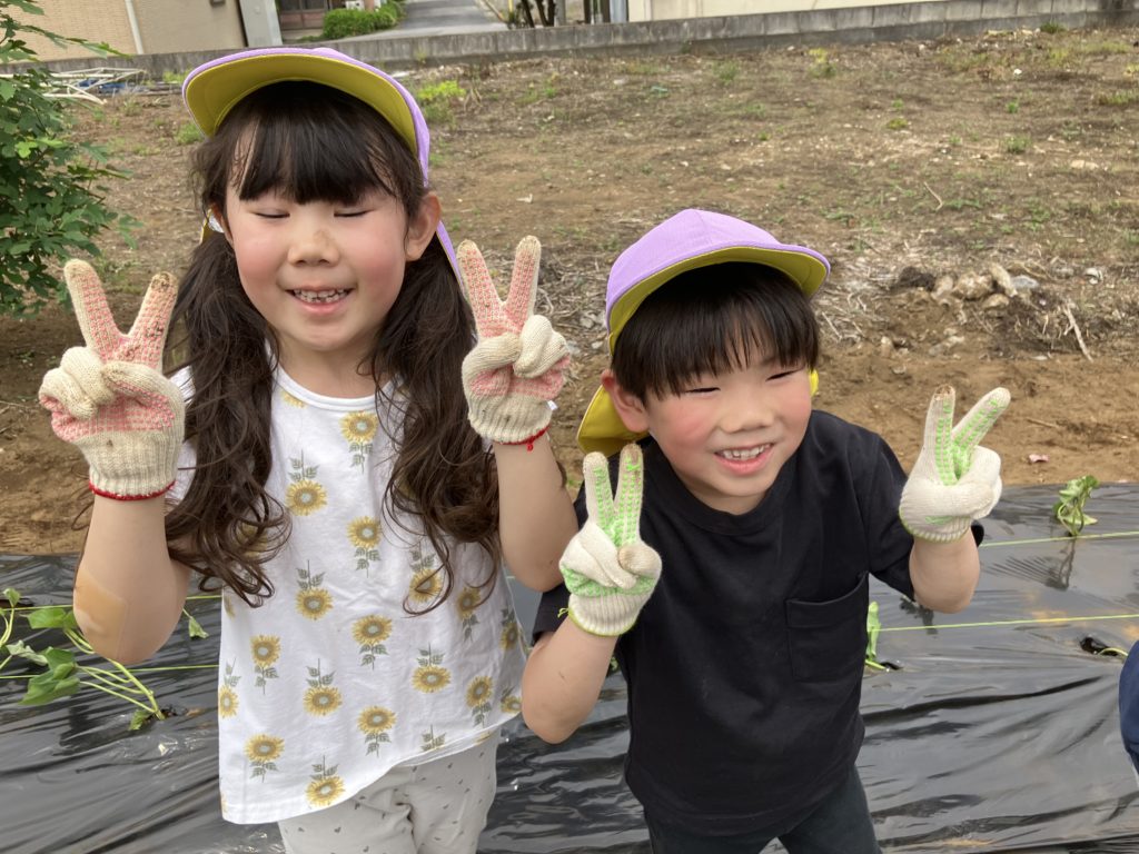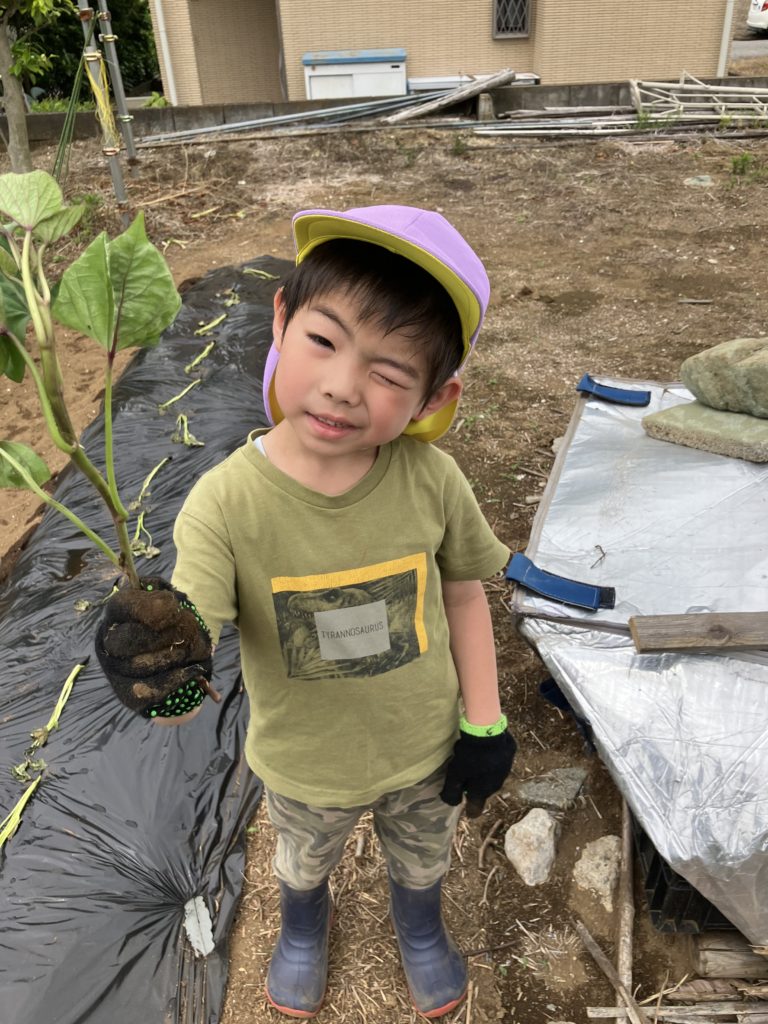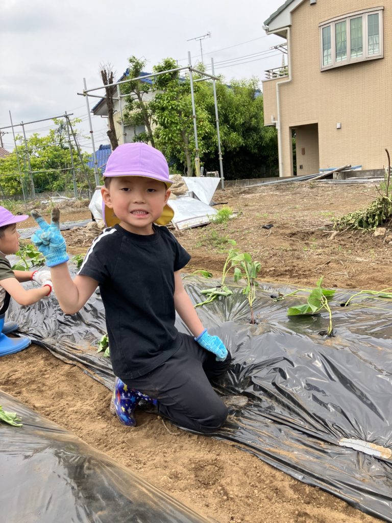 くじら組さんが気持ちを込めて植えたさつまいも🍠収穫が楽しみですね🎶