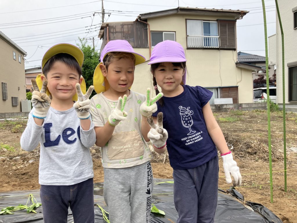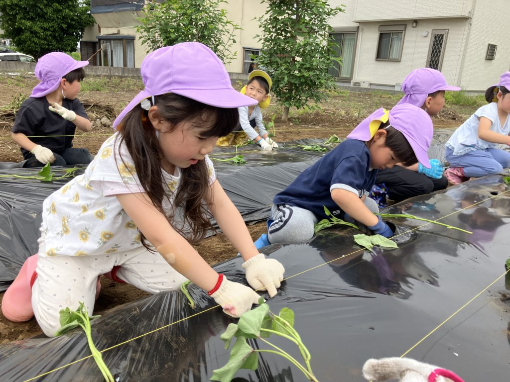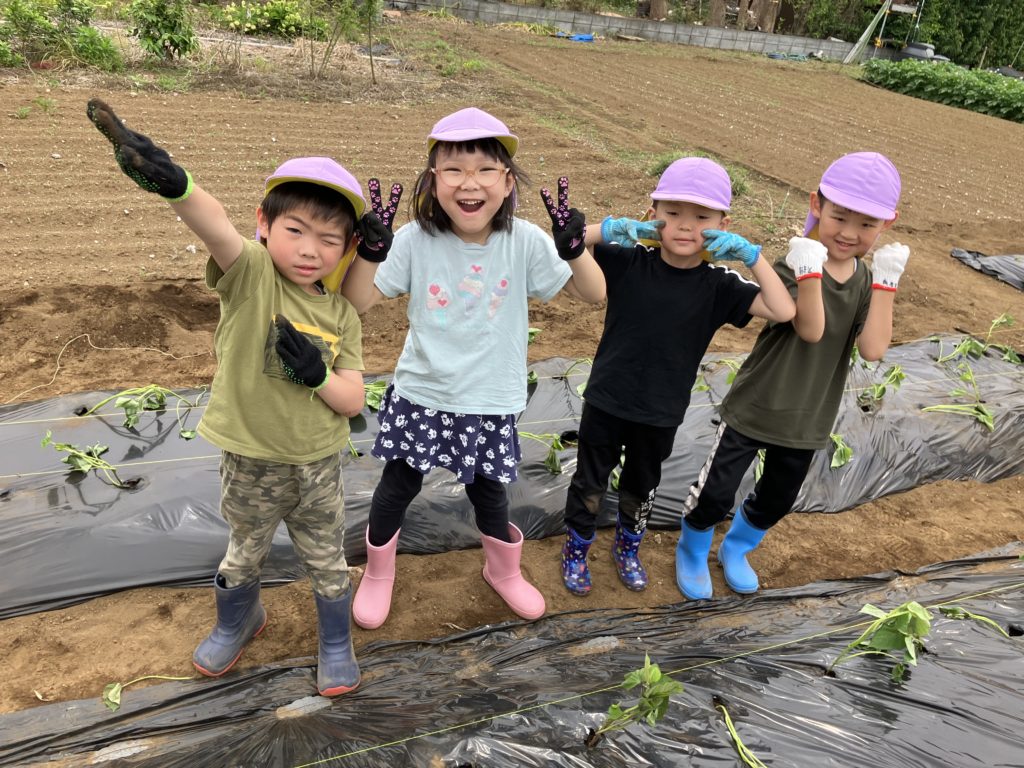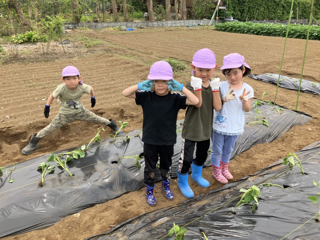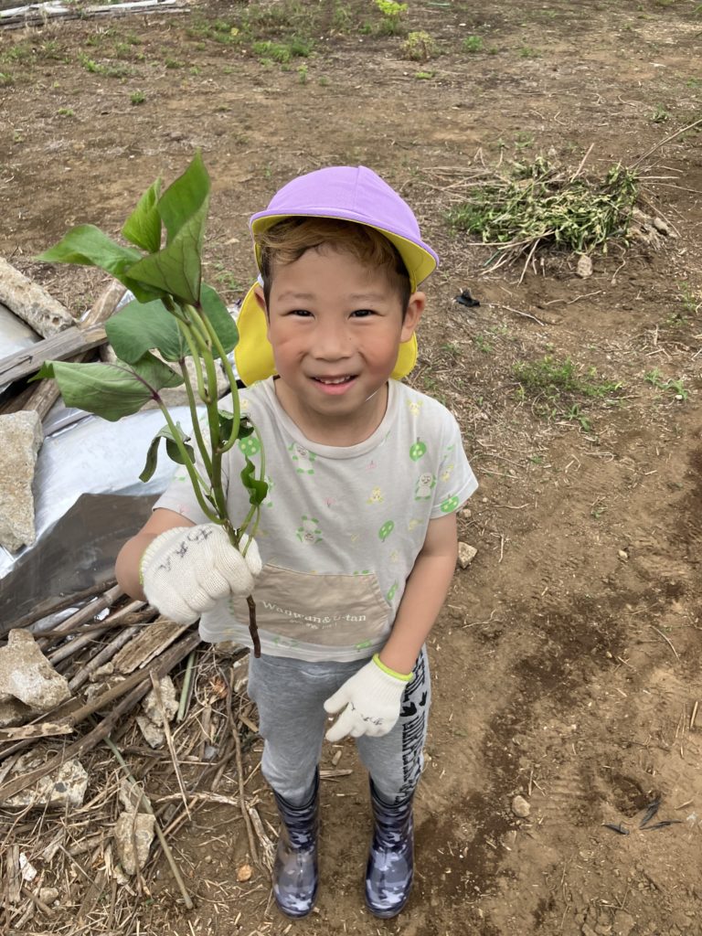 くじら組さんが気持ちを込めて植えたさつまいも🍠収穫が楽しみですね🎶