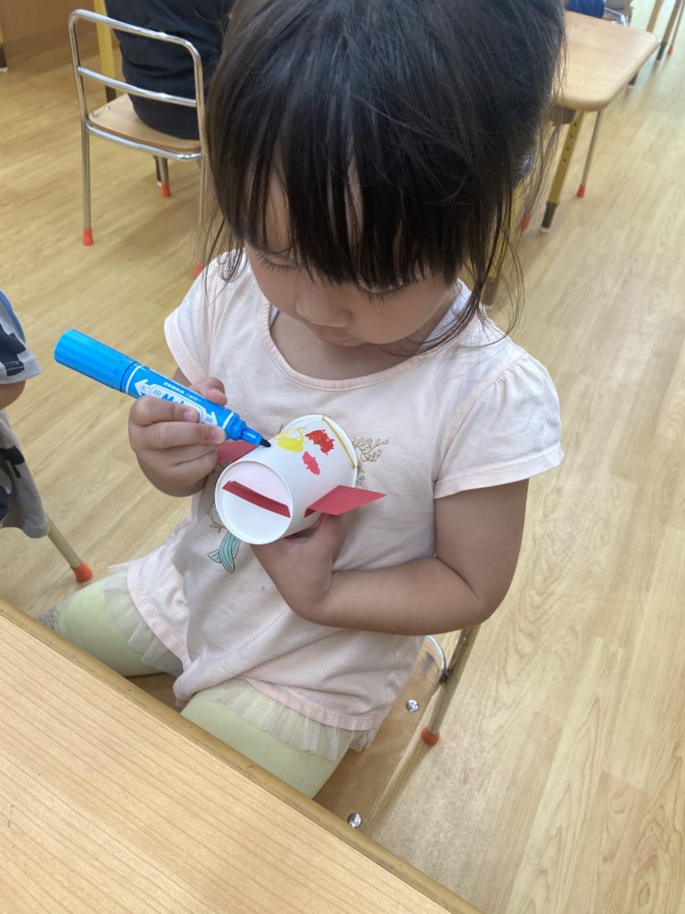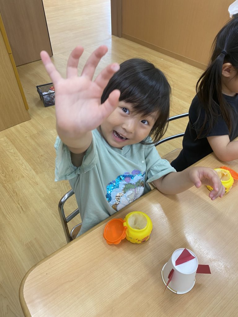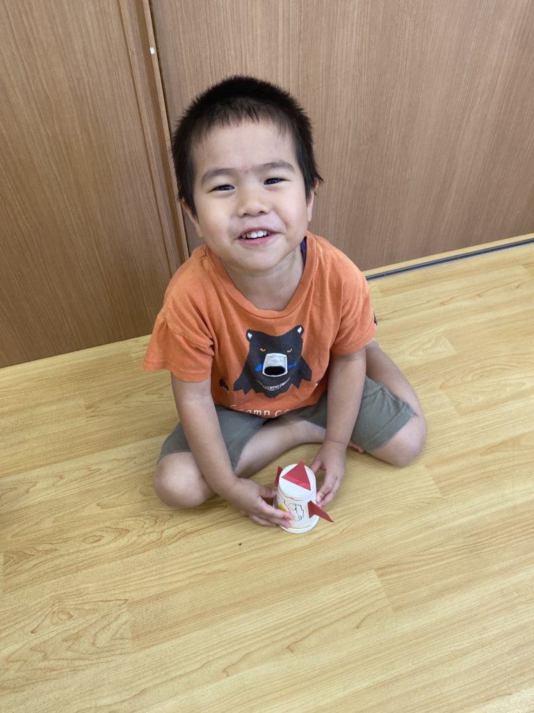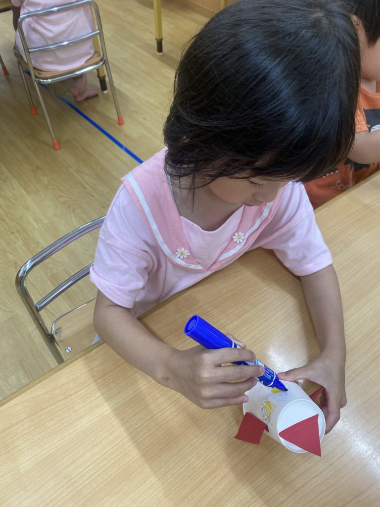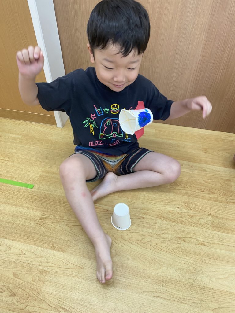 紙コップでロケットを作りました!「3.2.1」の掛け声で飛ばしました🚀飛んでいくロケットに大喜びでした😊