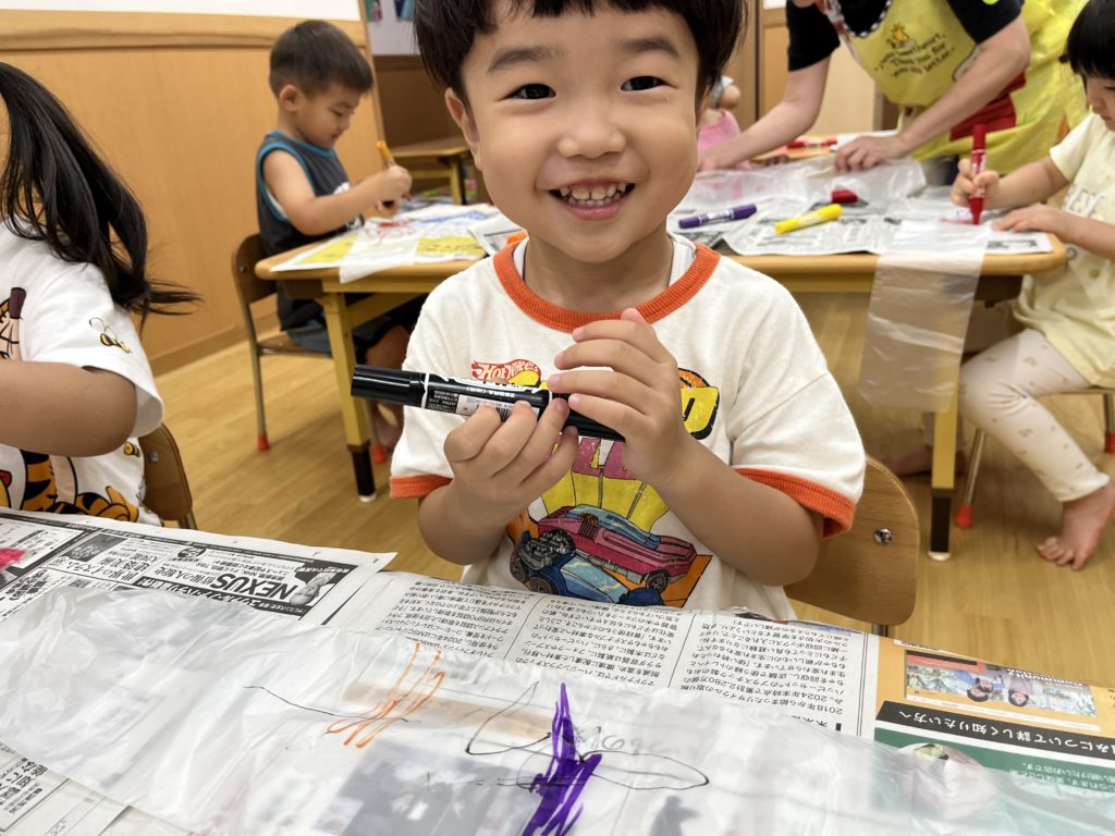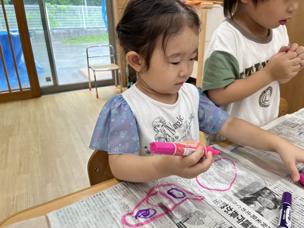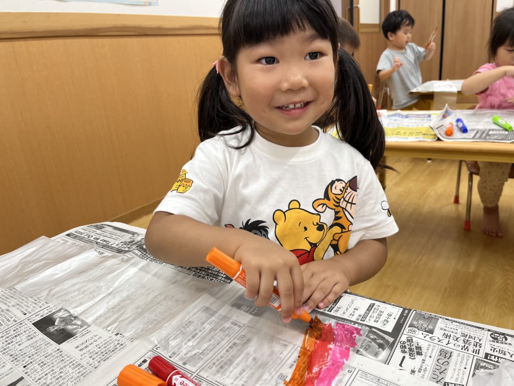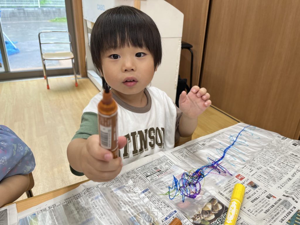 傘袋に好きな絵柄を描いてみんなで飛ばして遊んでみました🚀💕