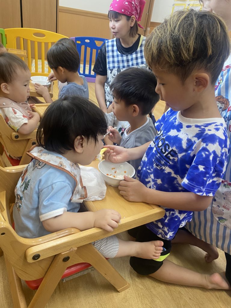赤ちゃんたちが大好きなくじら組さん🐳乳児クラスのお友だちのお手伝いをしにいきました👶💞