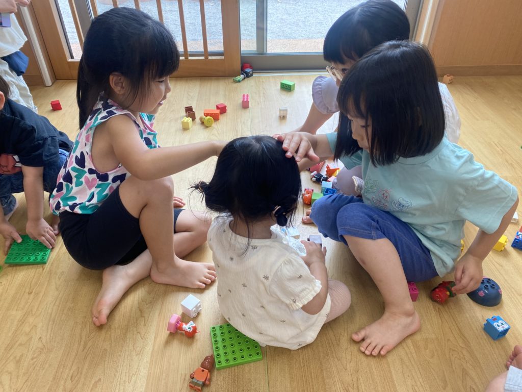 小さなお友だちに頼られることが嬉しかったようで、みんなとても誇らしげな表情でした✨こうした異年齢児との関わりや経験を通して、思いやりの気持ちや自信が少しずつ育ってきているのを感じます😌💗