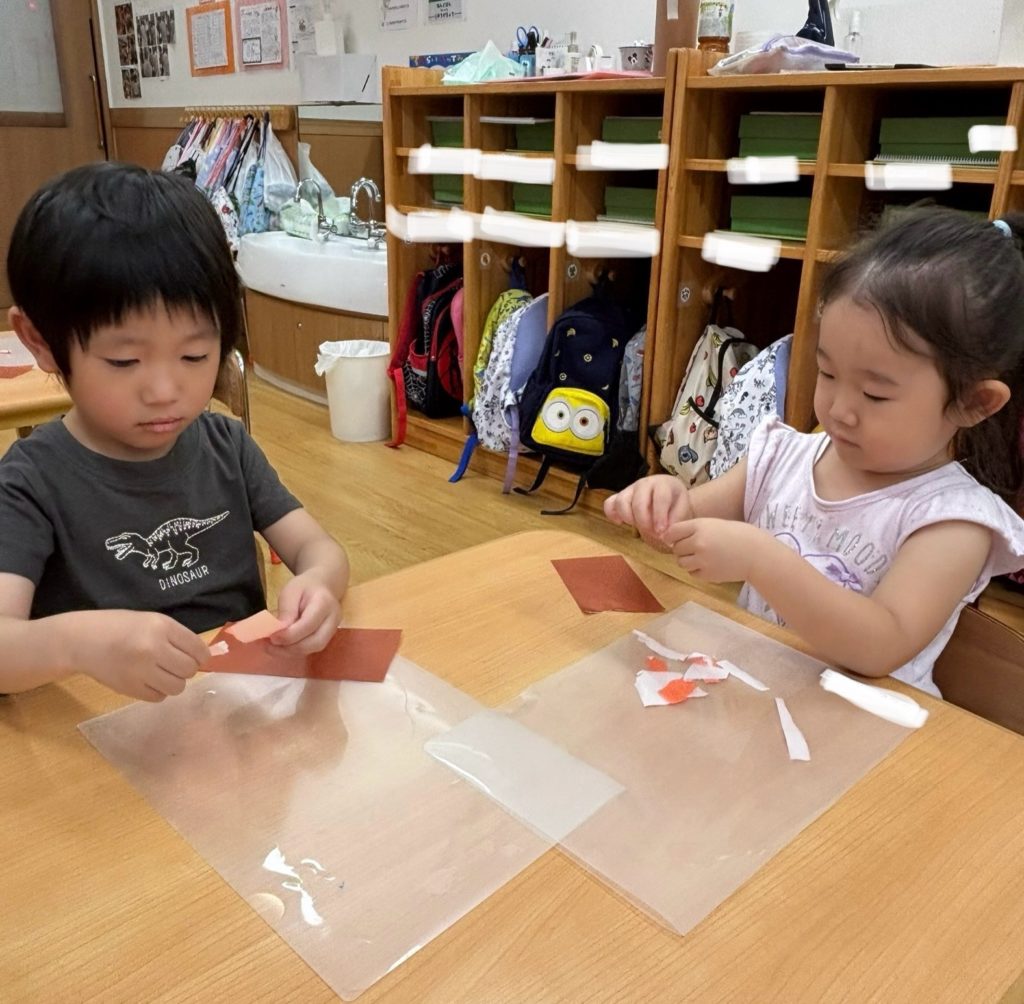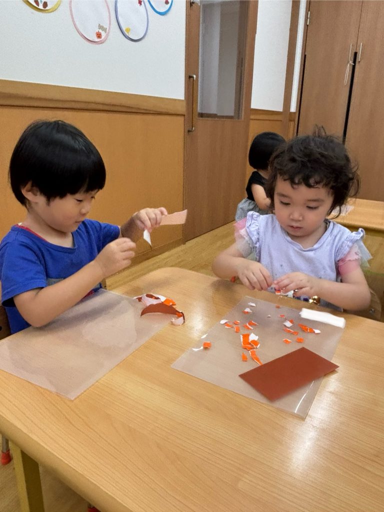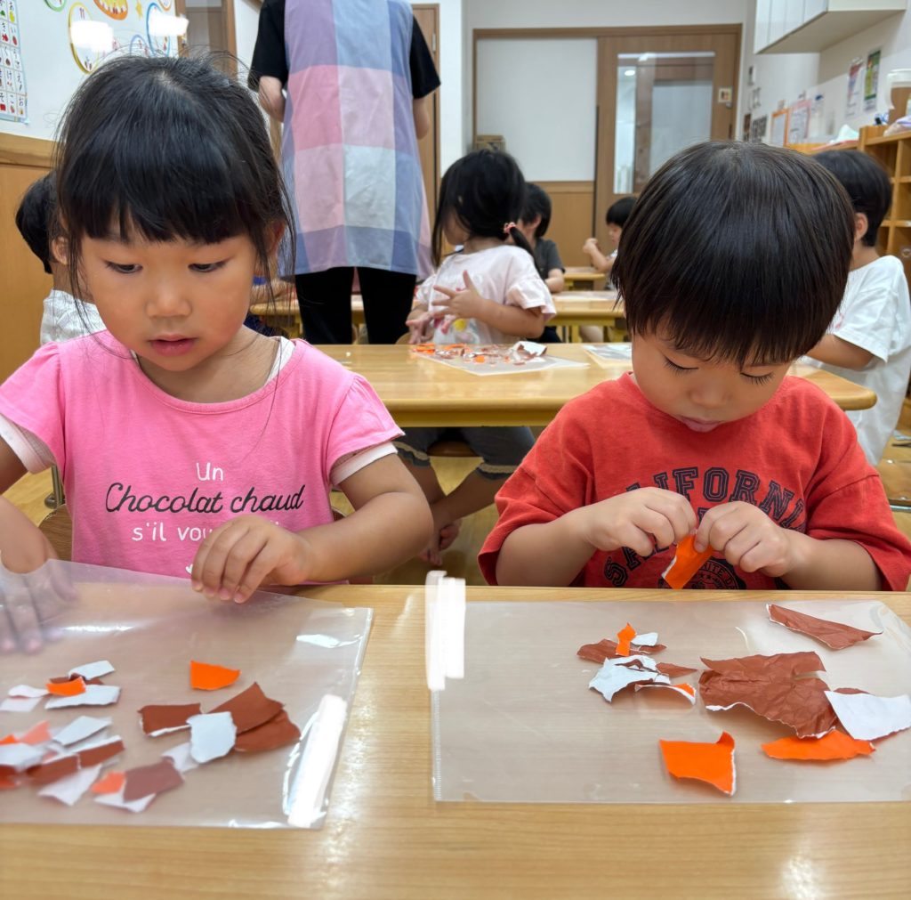 🌻は折り紙をちぎり、1枚1枚を丁寧に貼っていきました😃