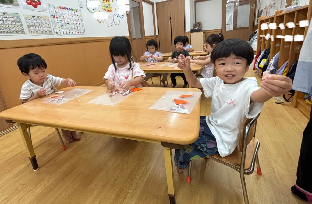 夏らしい手型遊びをしました😃