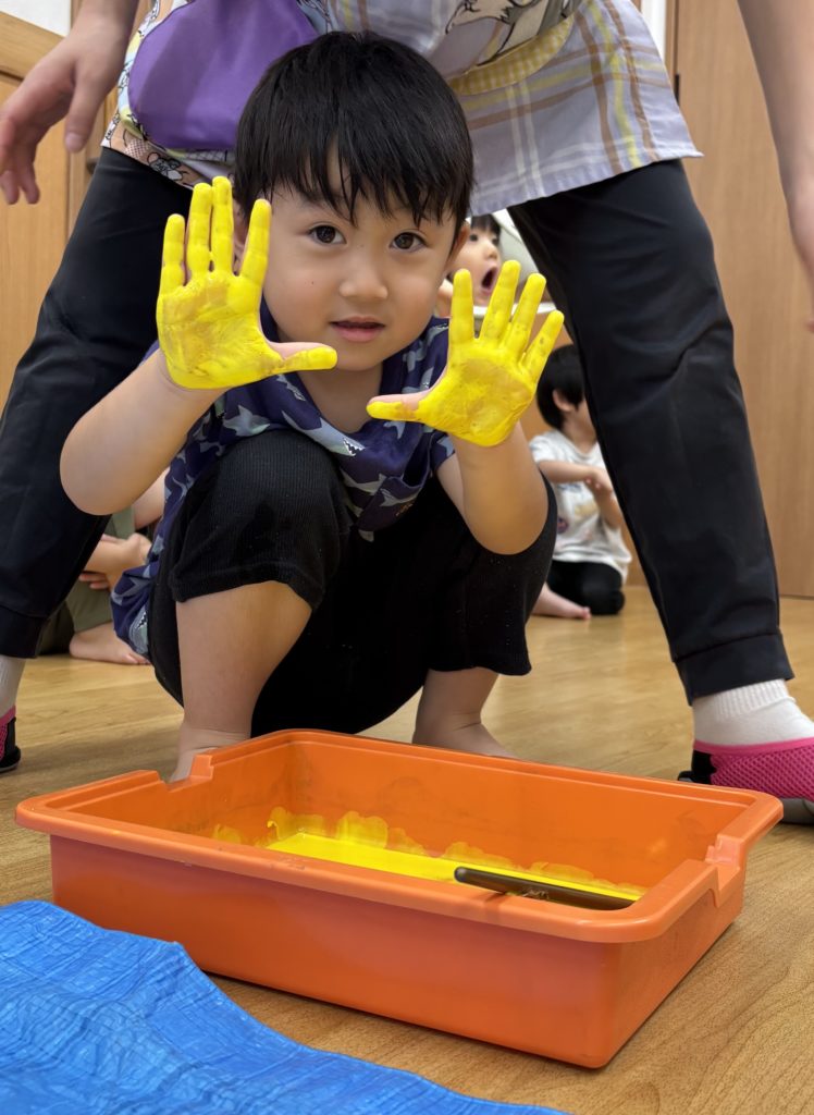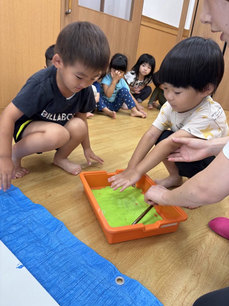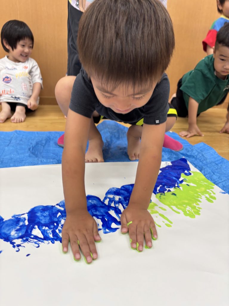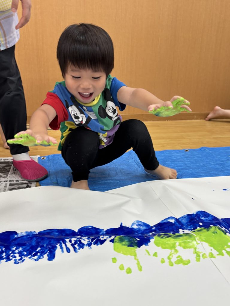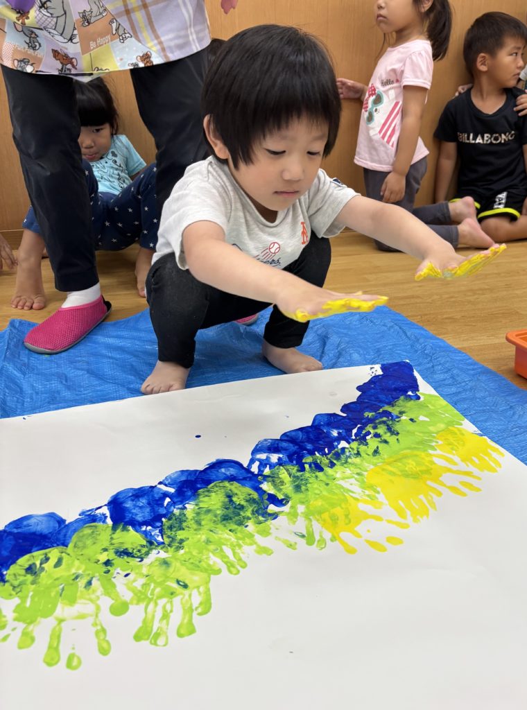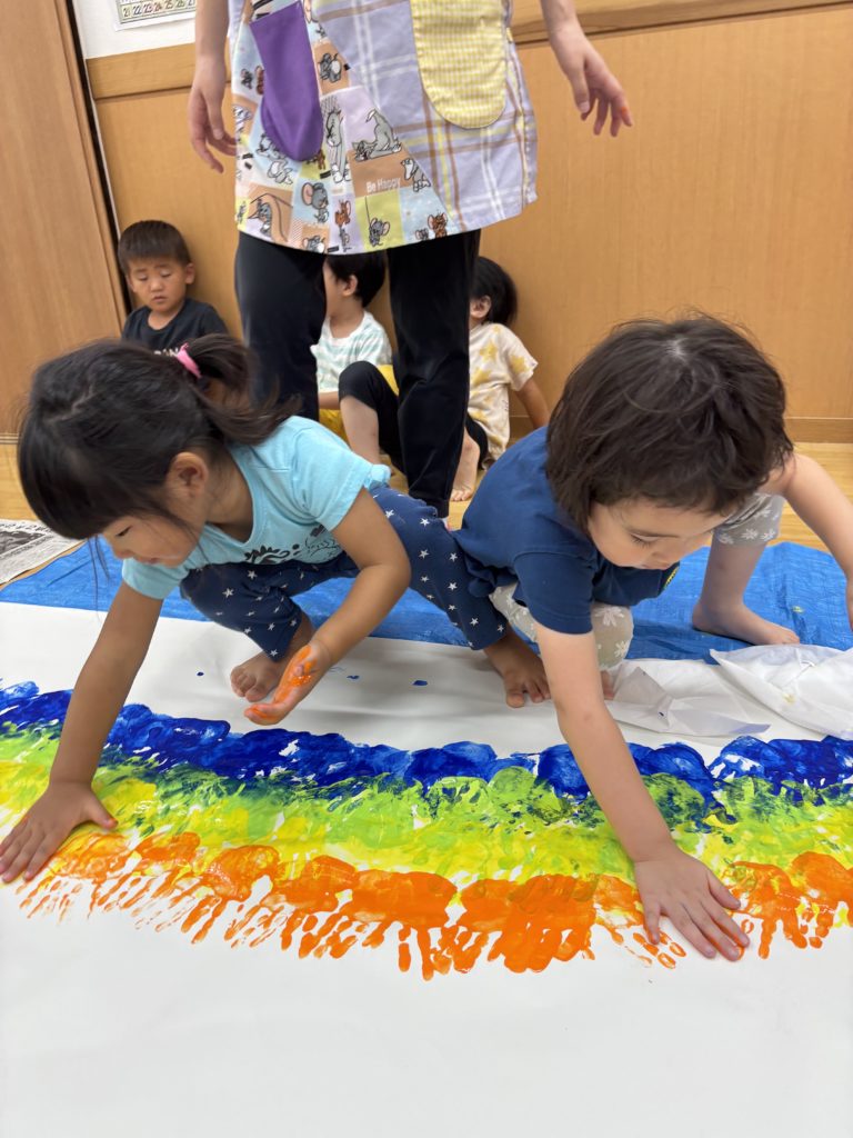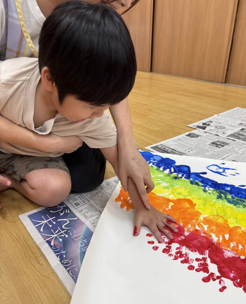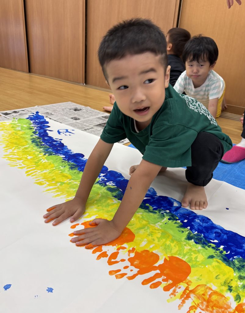 絵の具の感触とダイナミックな虹のアートにみんな大喜び🌈😆
