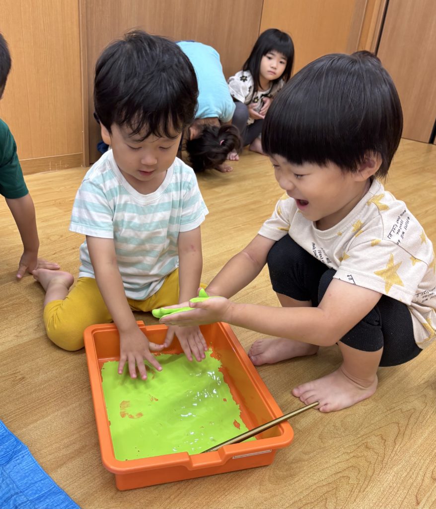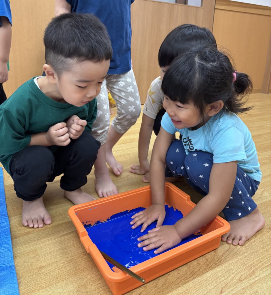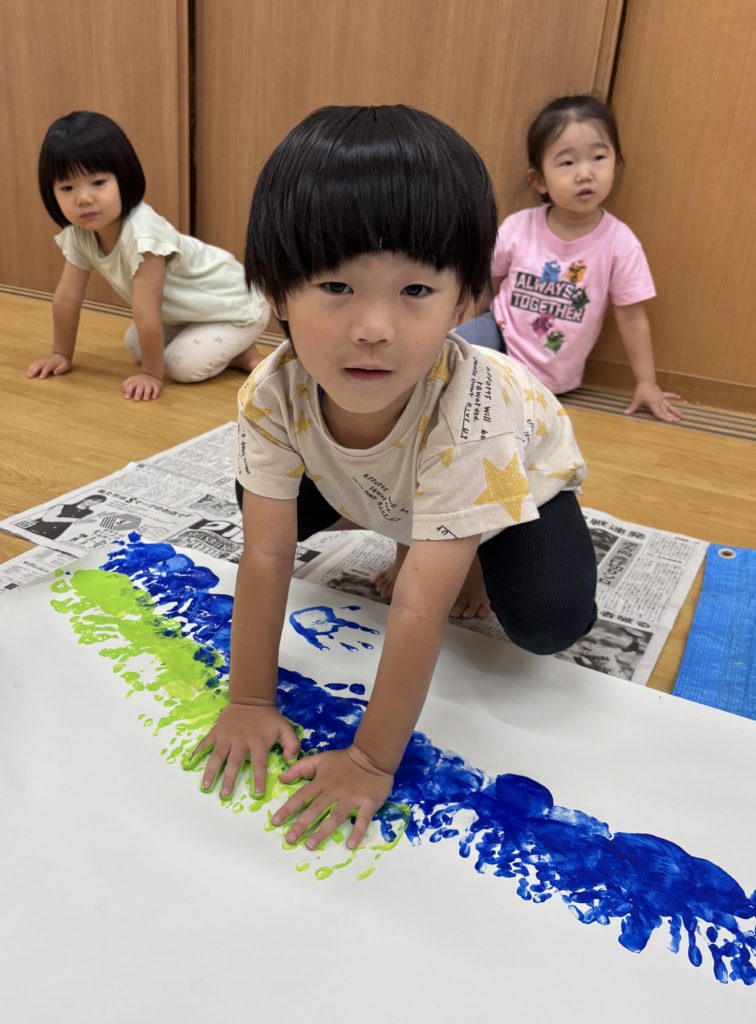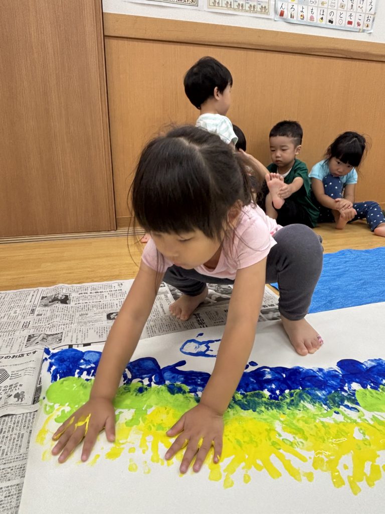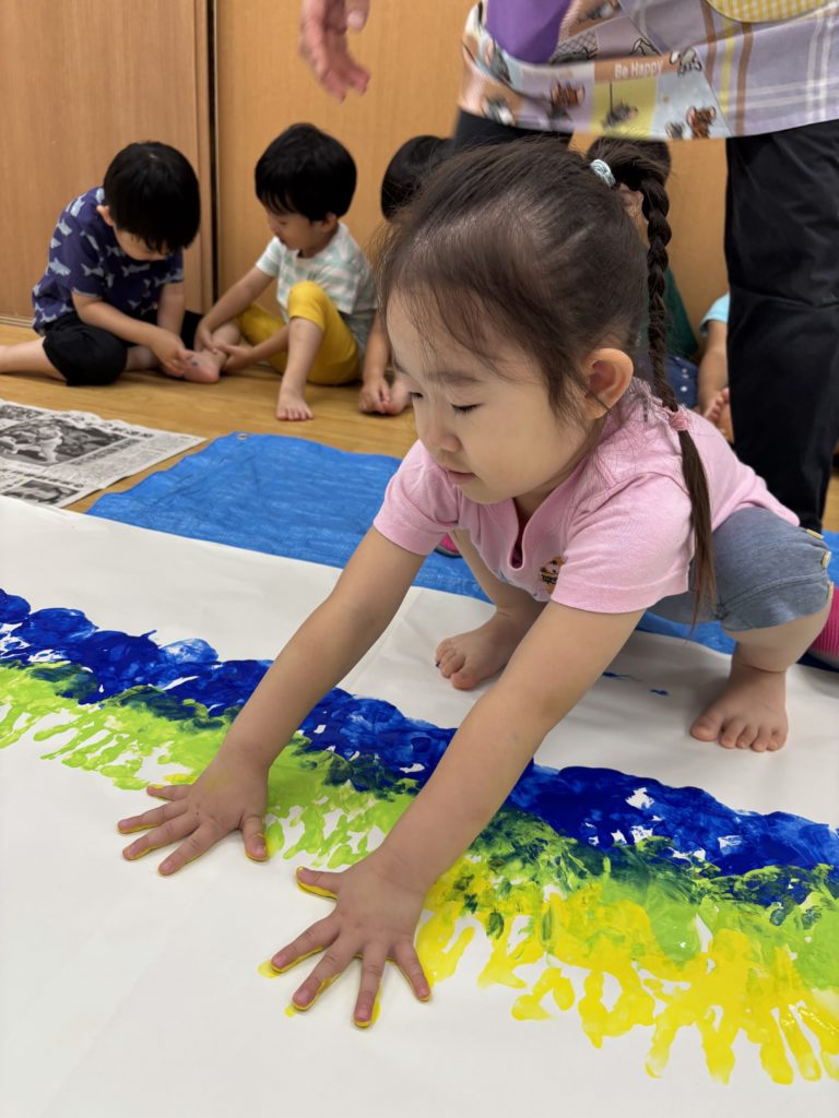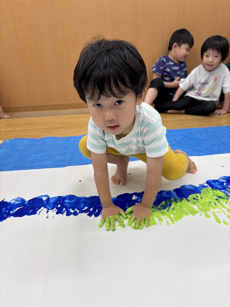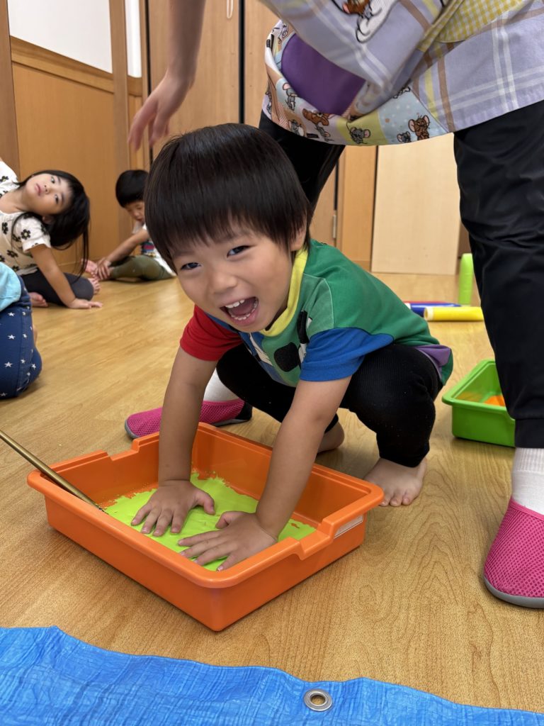 絵の具の感触とダイナミックな虹のアートにみんな大喜び🌈😆