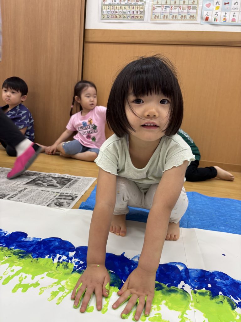 両手に絵の具をたっぷりつけて、真っ白い画用紙にペタッ🖐️💕