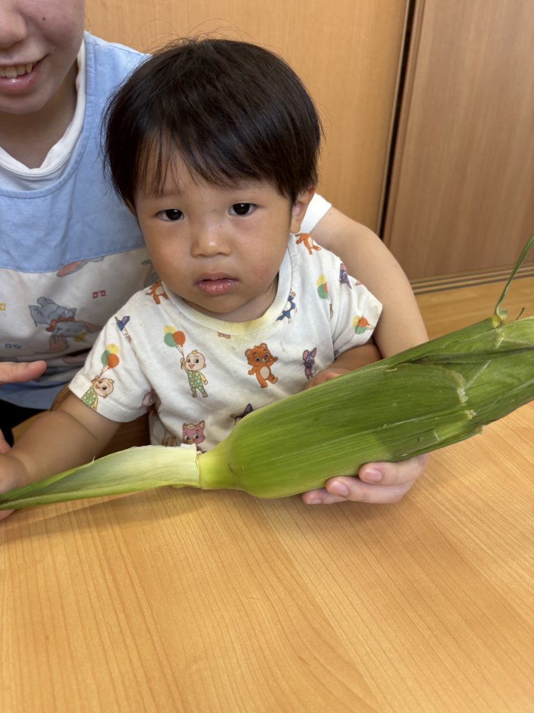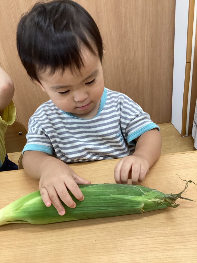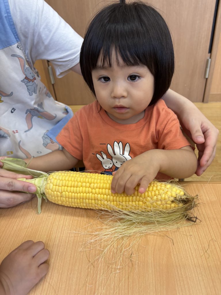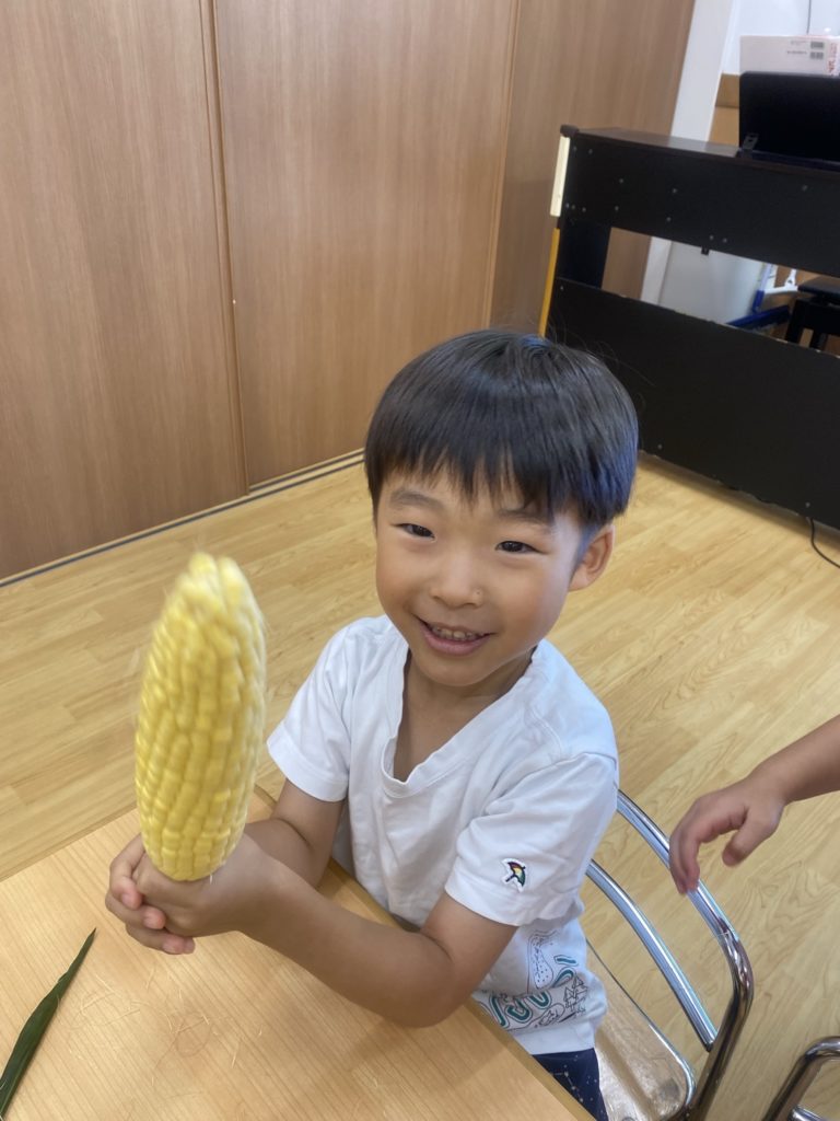 おやつで蒸しとうもろこしが出て、「甘い」と嬉しそうに食べていました!!