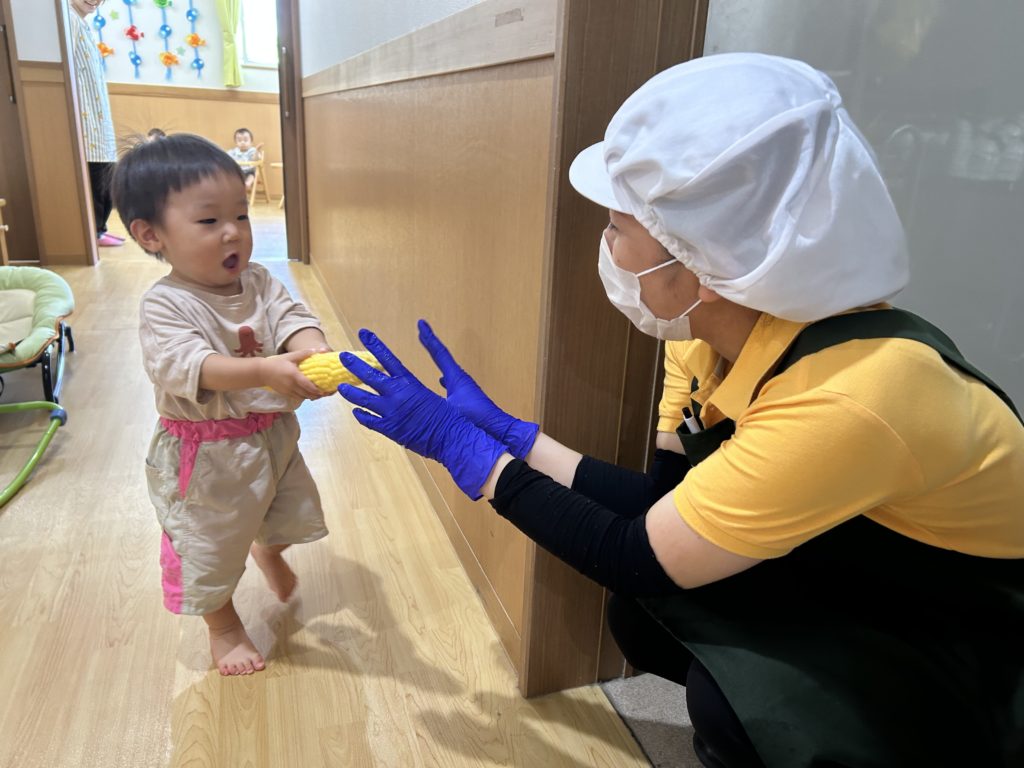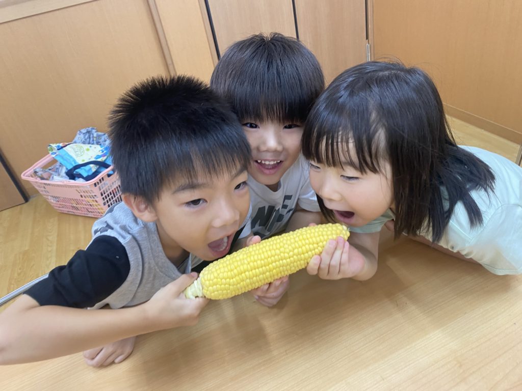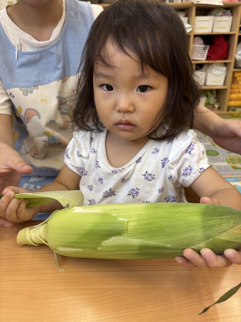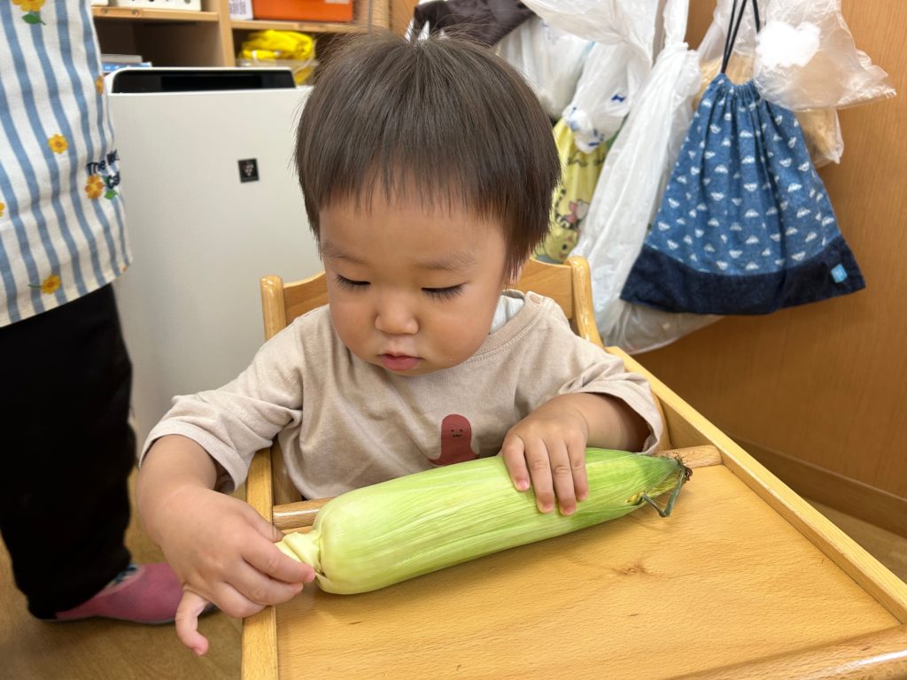 おやつで蒸しとうもろこしが出て、「甘い」と嬉しそうに食べていました!!