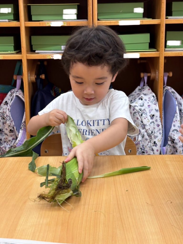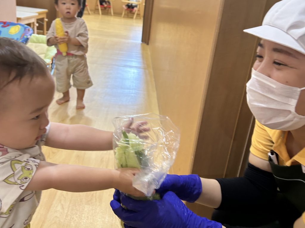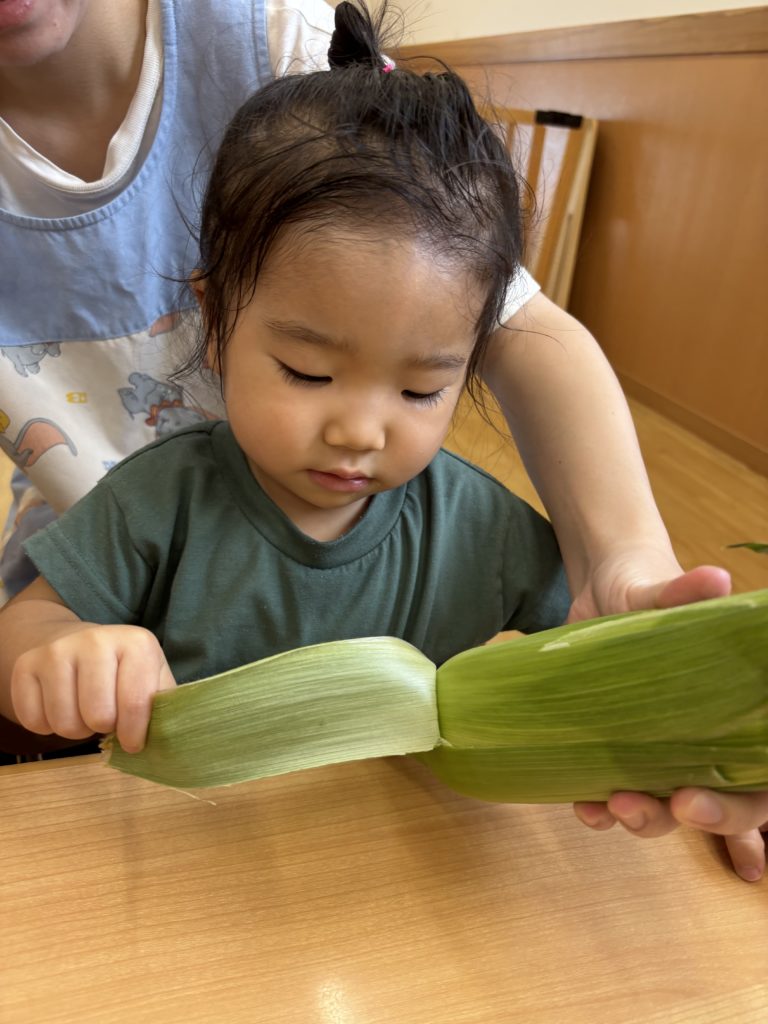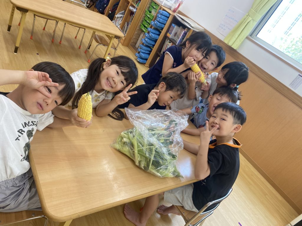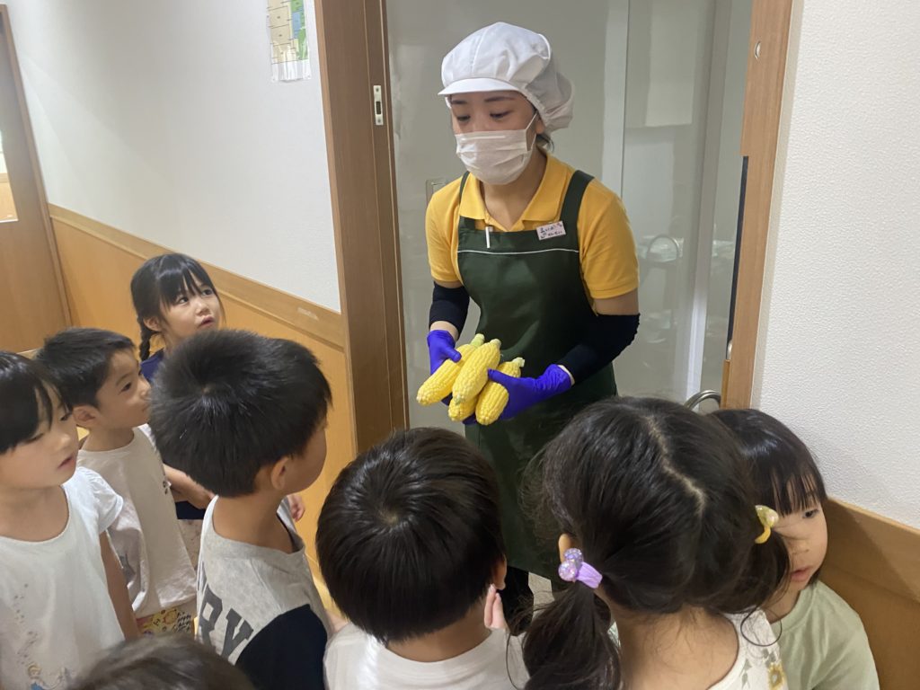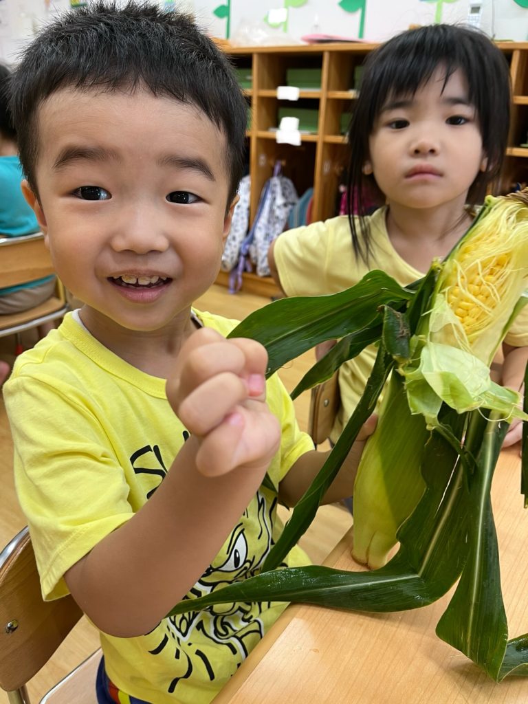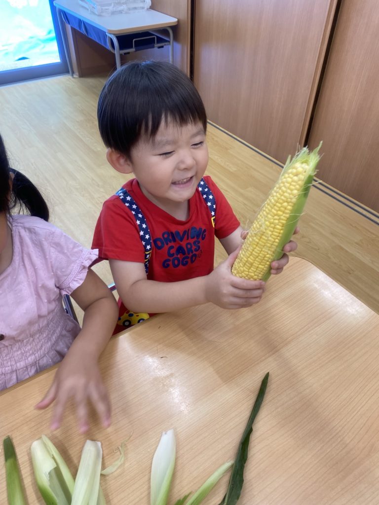 今年度2回目のとうもろこしの皮むき、初めてやった7月より上手に剥く子どもたち、楽しそうに参加していました!
