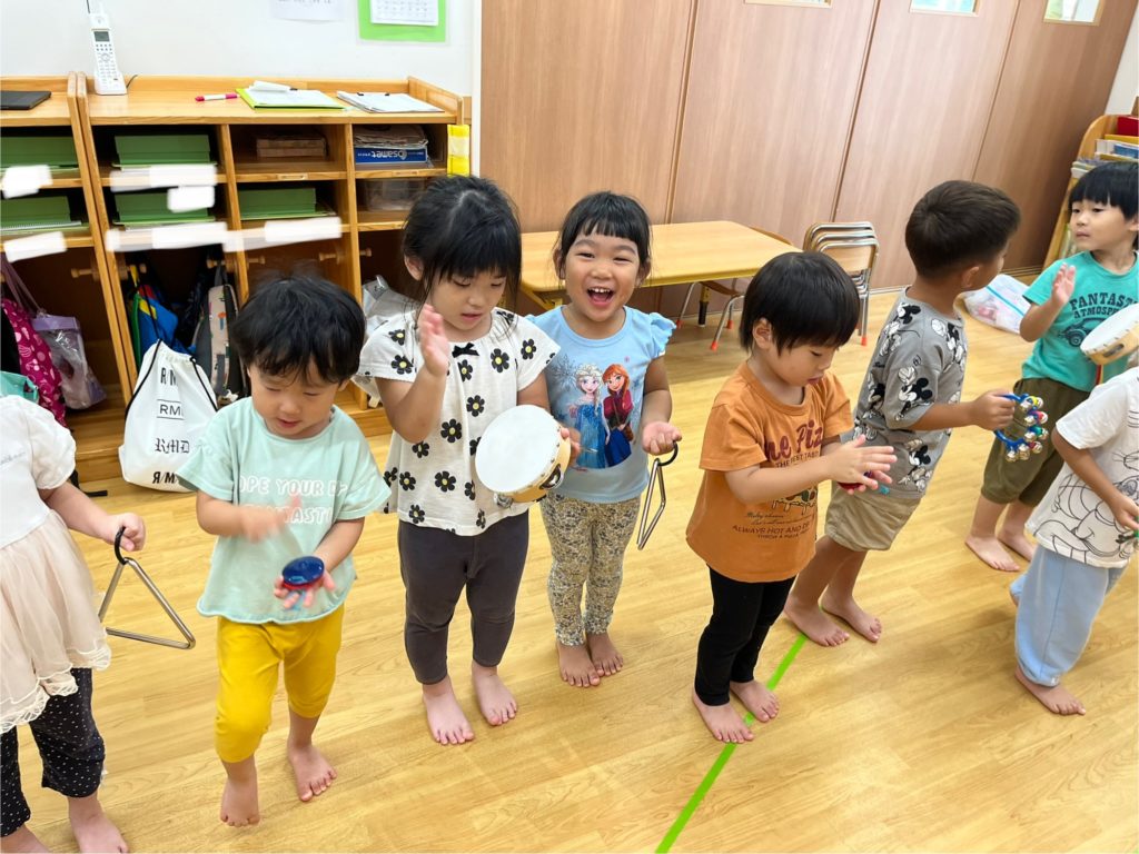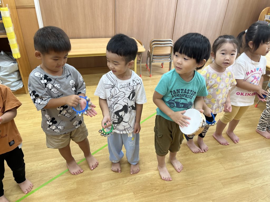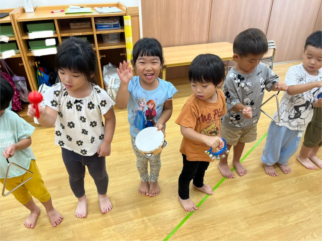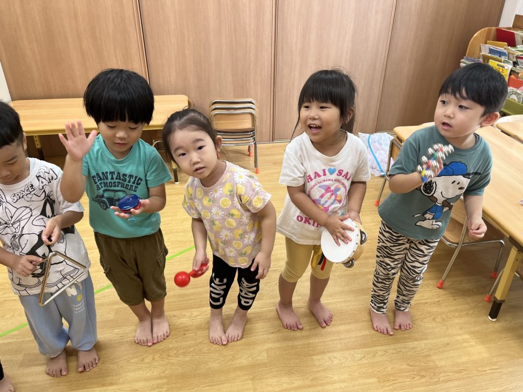 ピアノの音に合わせてトライアングル・カスタネット・タンバリン・マラカスで楽器演奏を楽しみました‼️