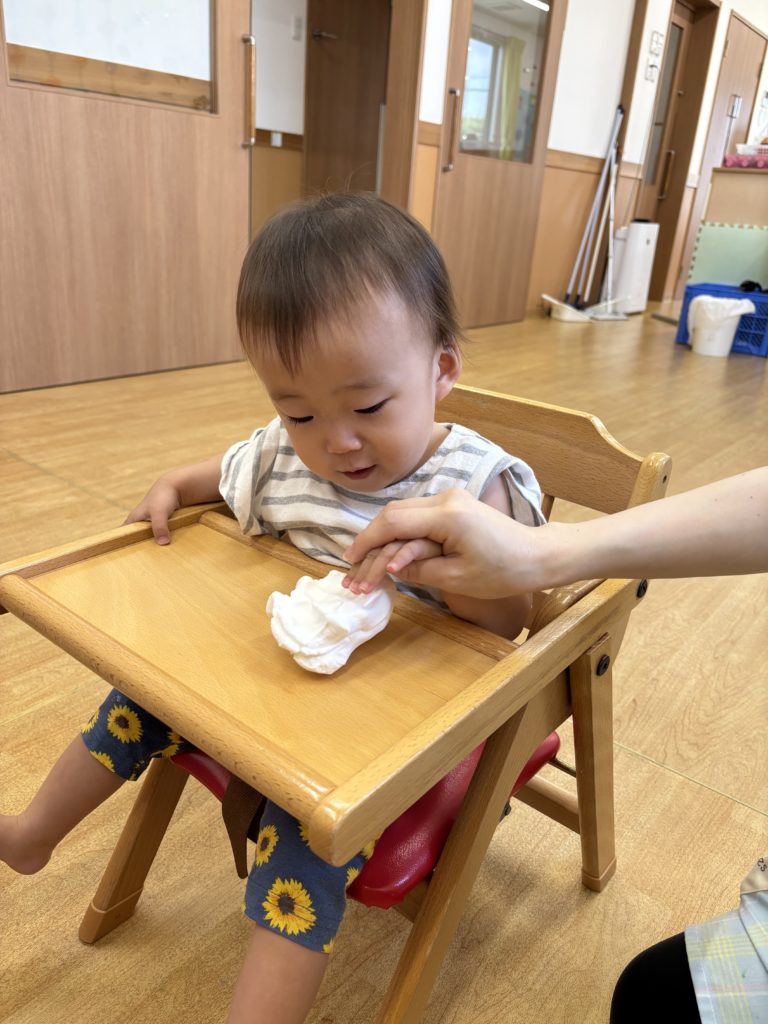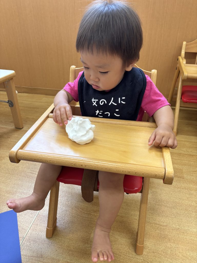 初めて触る感触に困惑した様子でしたが、伸ばすと楽しかったようで笑顔も見られました🎶