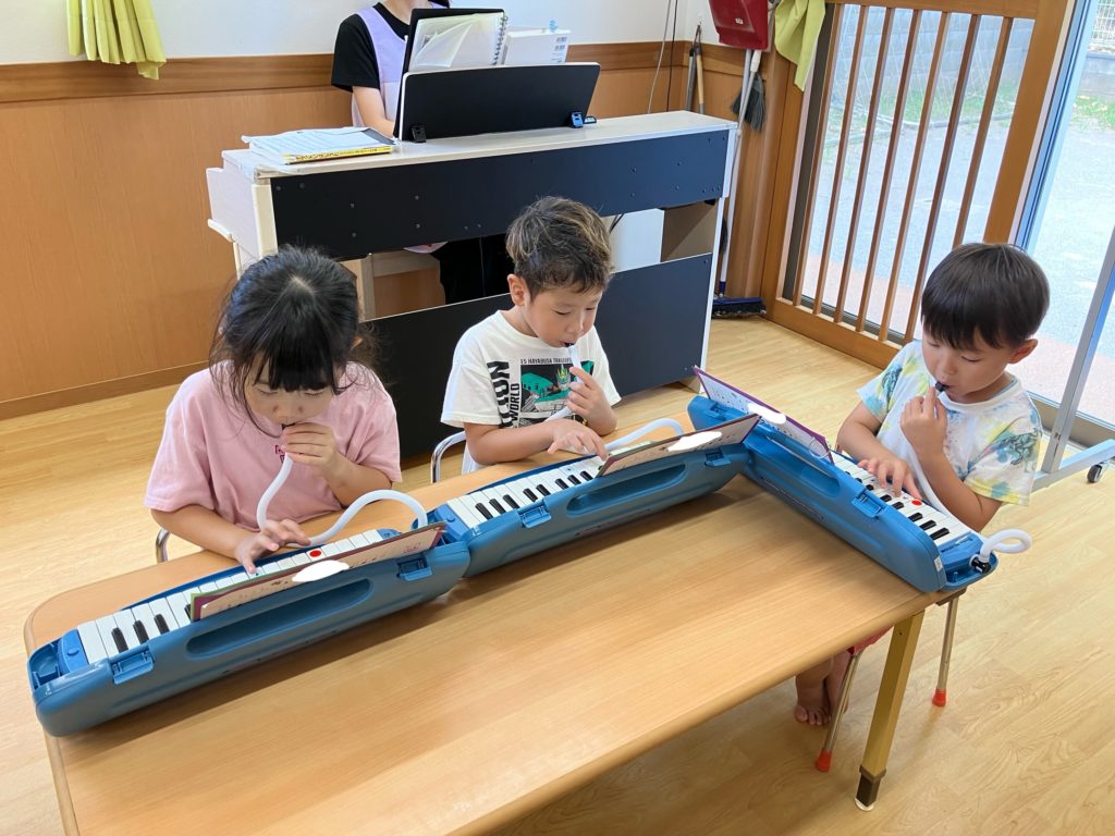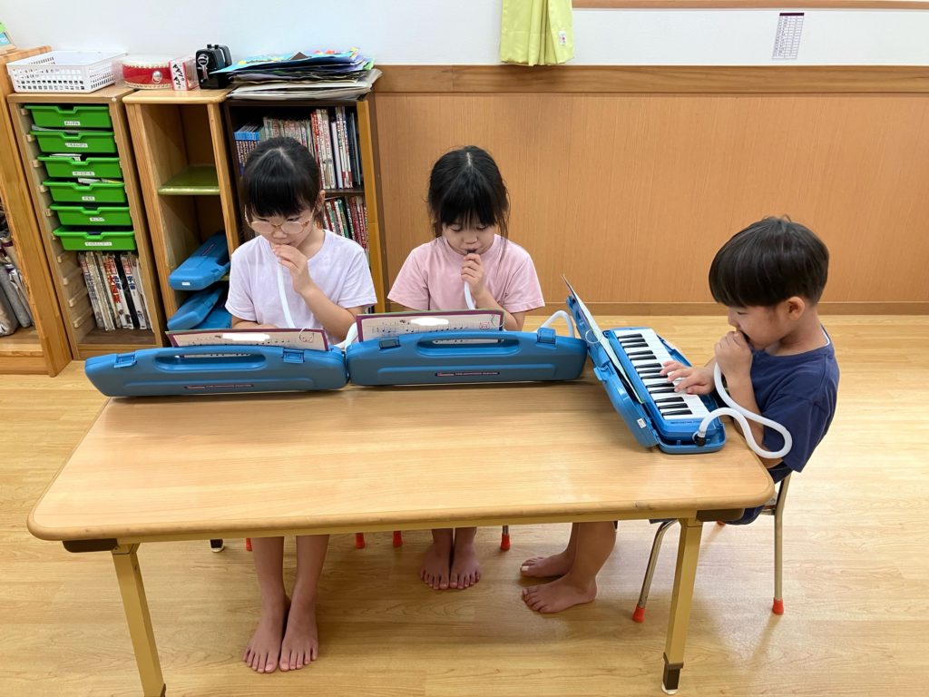 くじら組からメロディオンの楽しそうな音が聴こえてきました🎶「ちょうちょ」や「かえるのうた」、「きらきらぼし」を演奏してくれました💖くまのみ組とぺんぎん組のお友だちが聴きにきてくれました😄🎶 とっても上手な演奏にみんなじーっと見つめて聴いてくれました💞