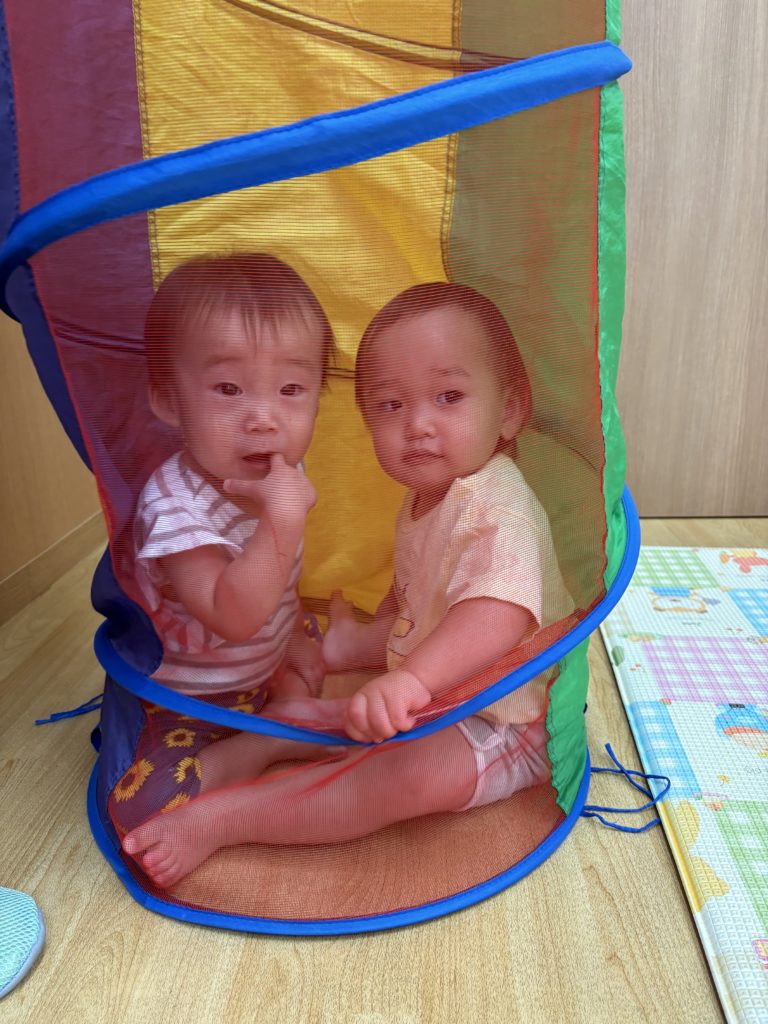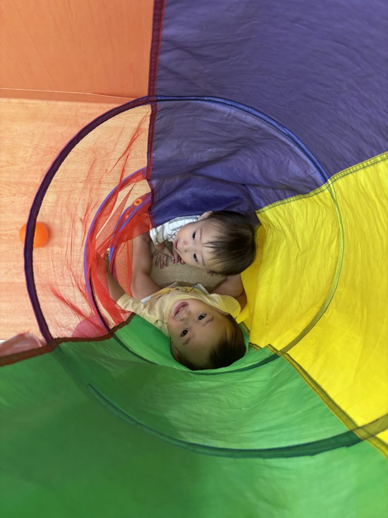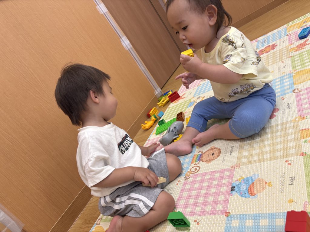 お友だちと距離が近くなると、お互いにニコニコしながら一緒に遊んでいるくまのみ組の子どもたちです😊