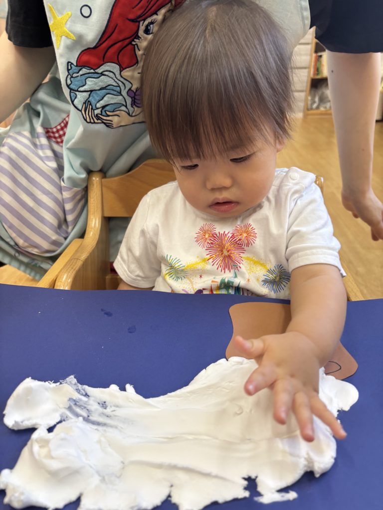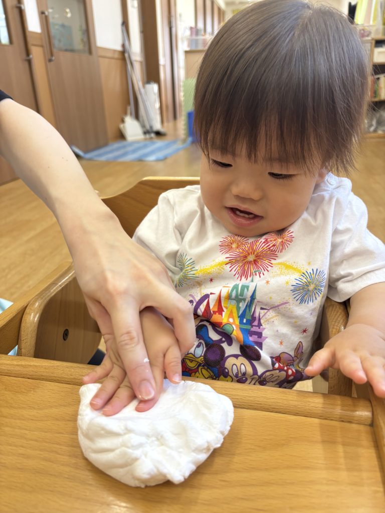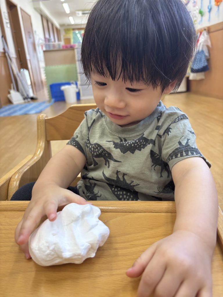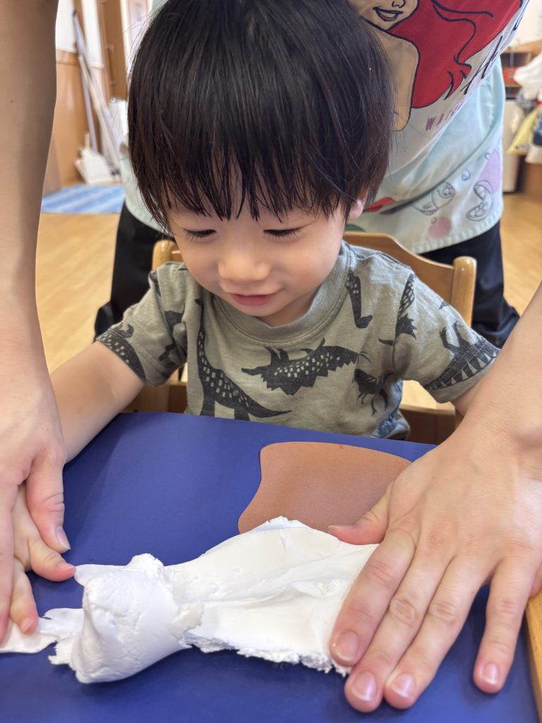 紙粘土をぺちぺちして感触を楽しみました🎶