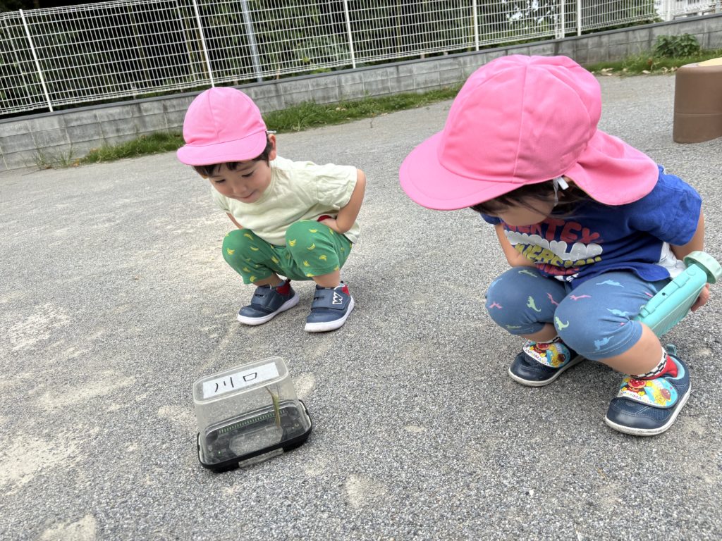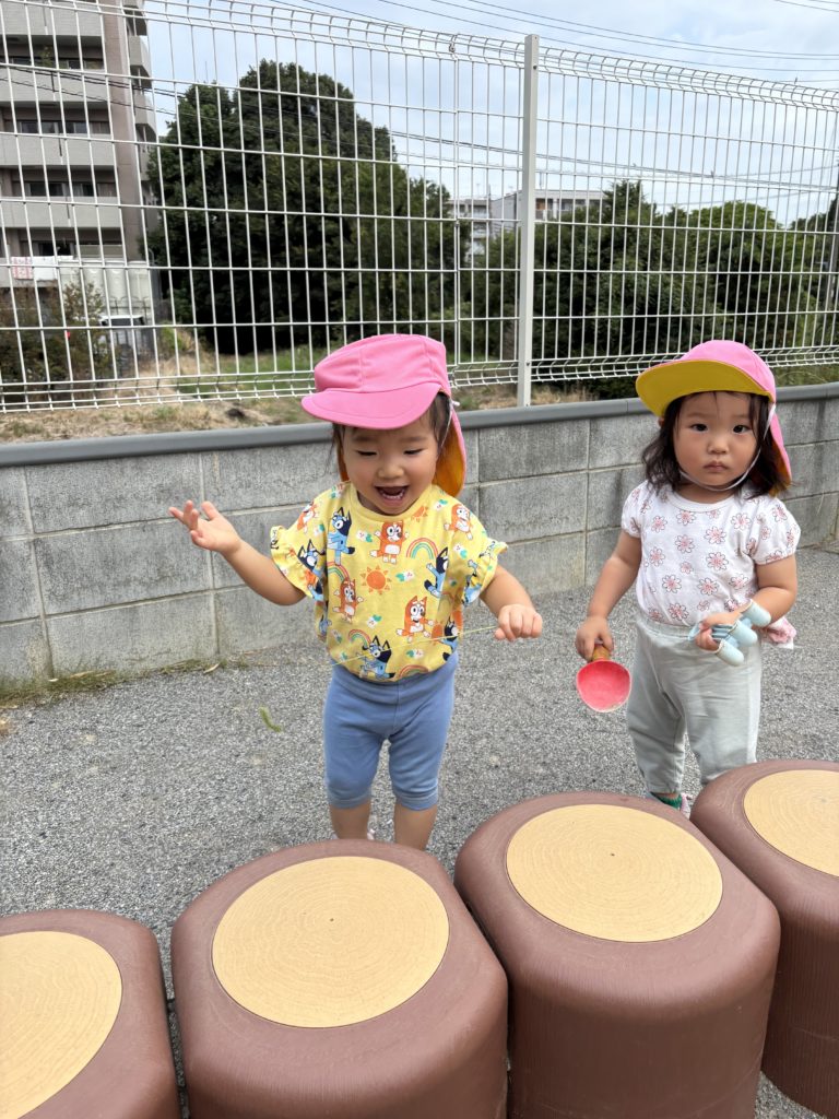 暑い日が続き、外に出られずお部屋の中で遊ぶことが多かったので久しぶりに出られた園庭。