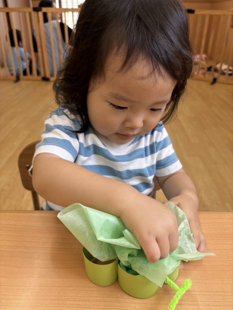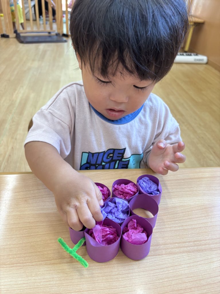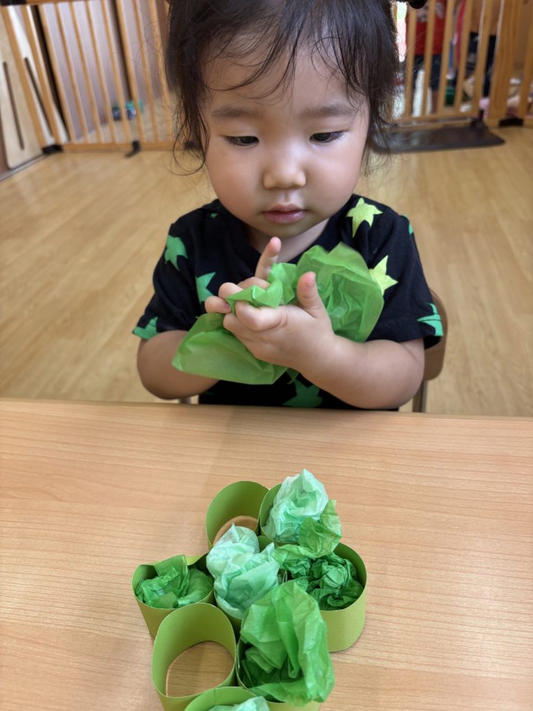 花紙を丸め、ぶどうの型に詰めてとても可愛いぶどうが完成しました✨✨