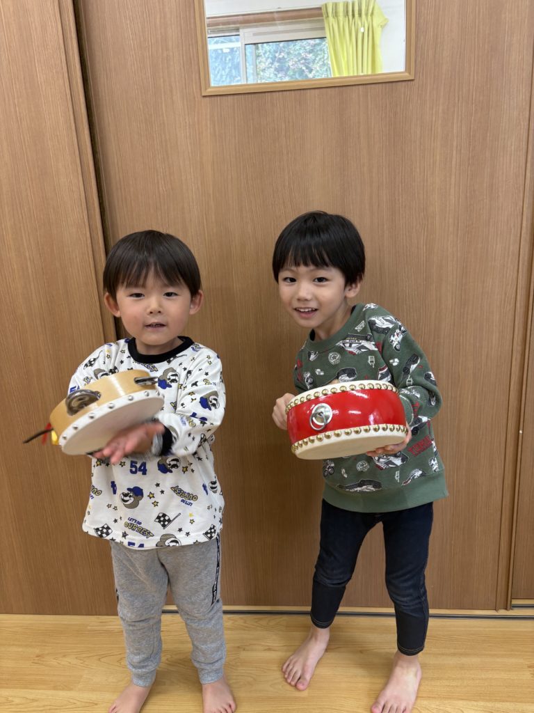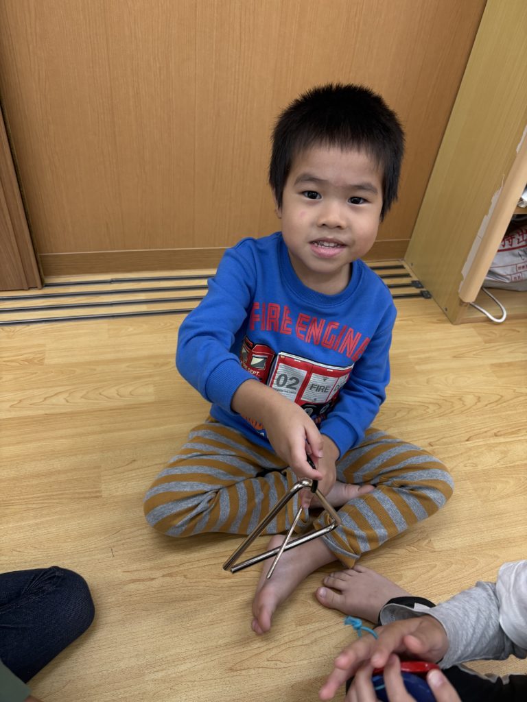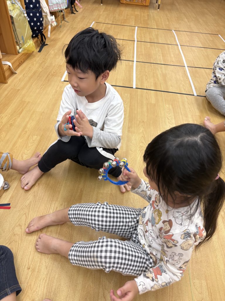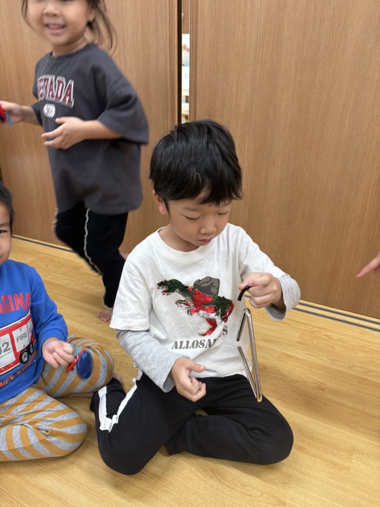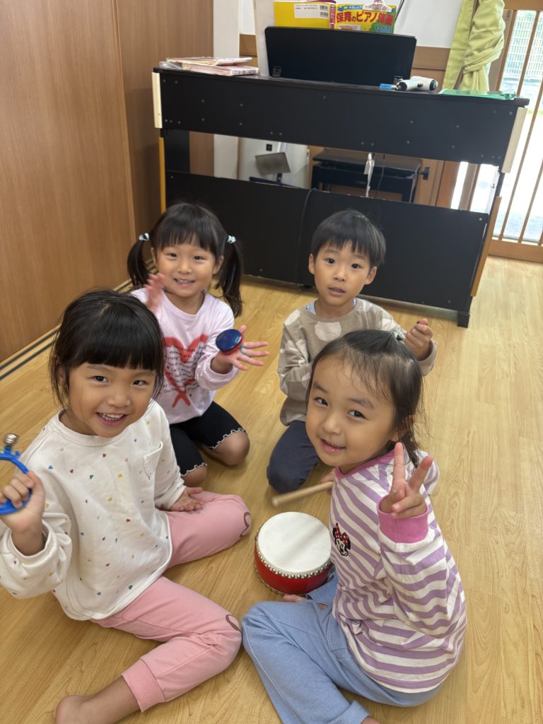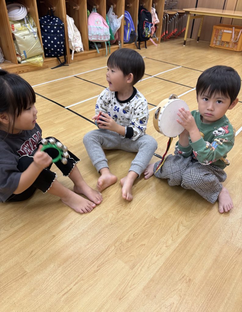先日、いろんな楽器を使って遊びました!普段、触れることが少ない楽器を前にして、とても嬉しそうないるか組さんでした😊みんなで楽器の使い方の確認をしてから、「まつぼっくり」「山の音楽家」などの秋の曲に合わせて演奏しました🎶