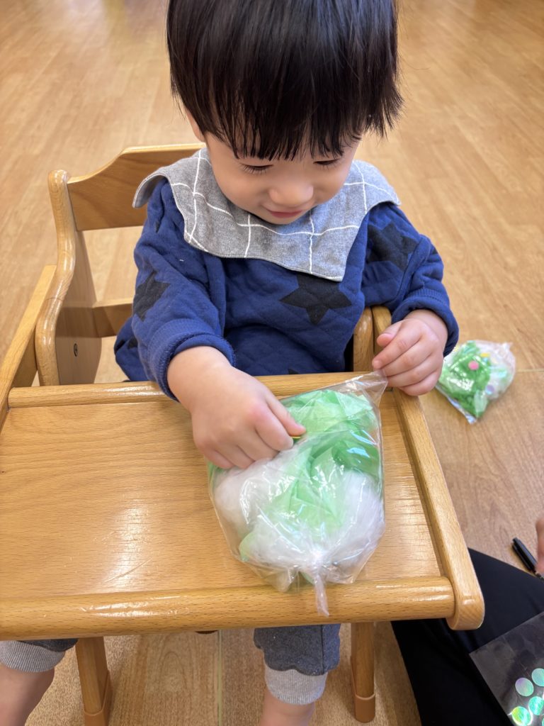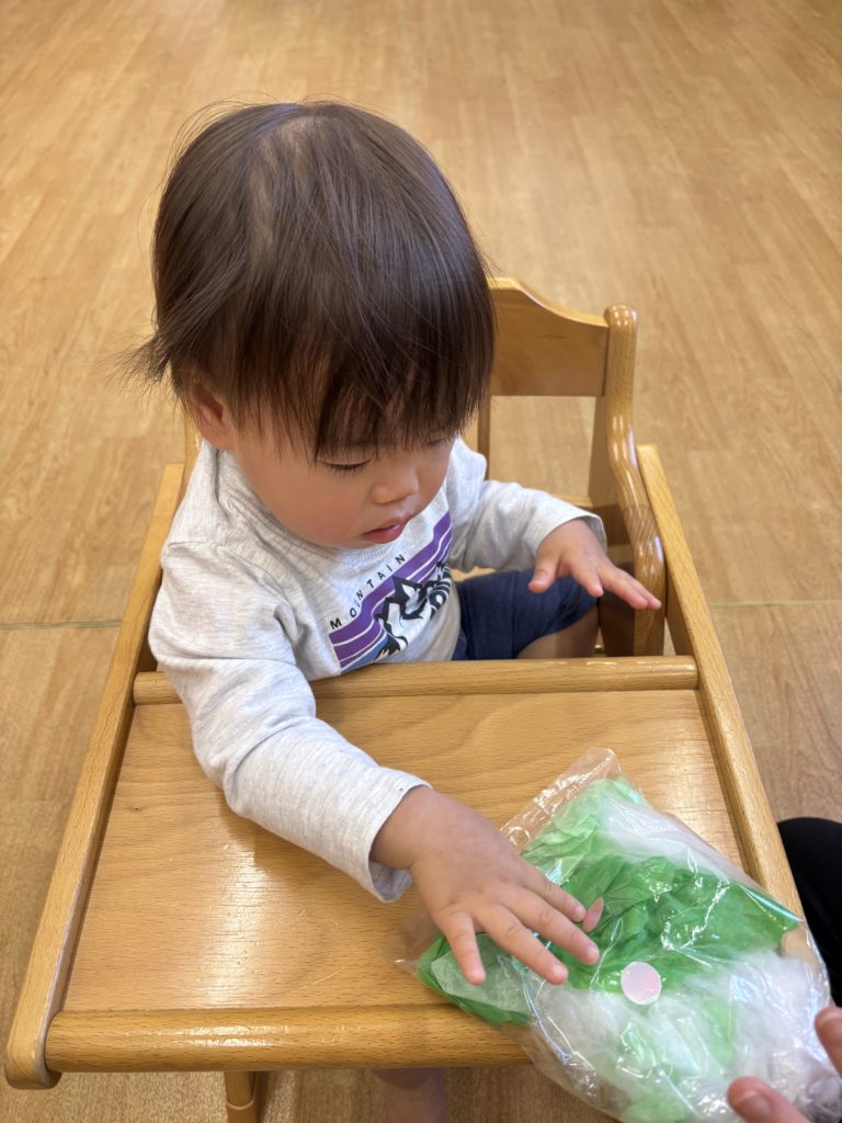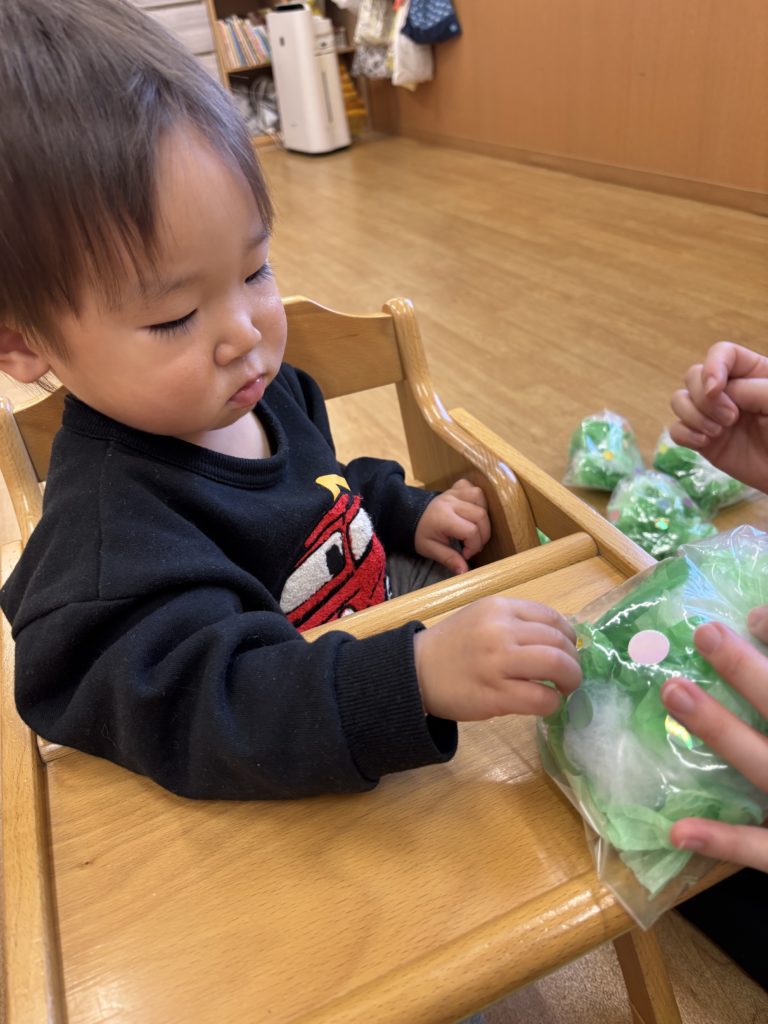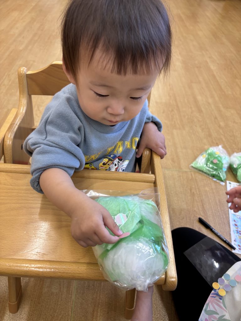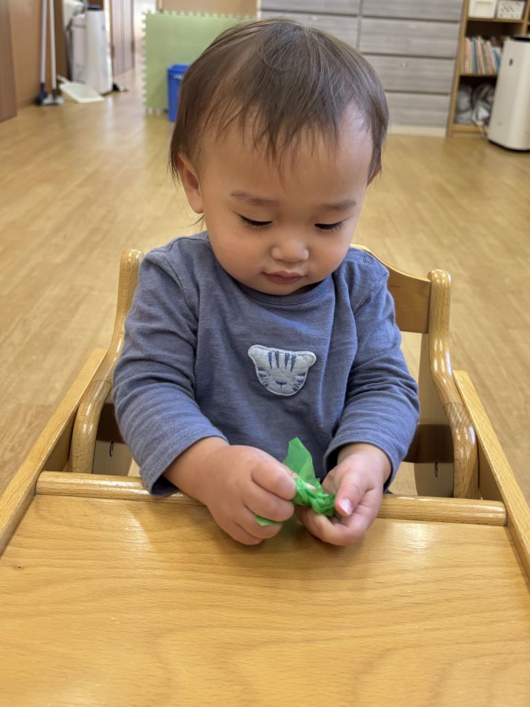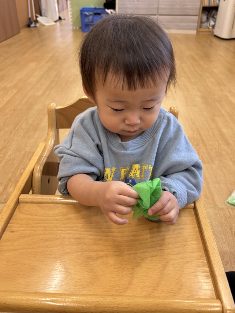くしゃくしゃがうまくできず手をすりすりしている子もいて夢中になる姿がとても愛らしかったです💕