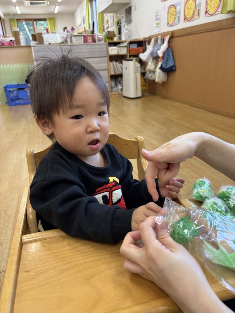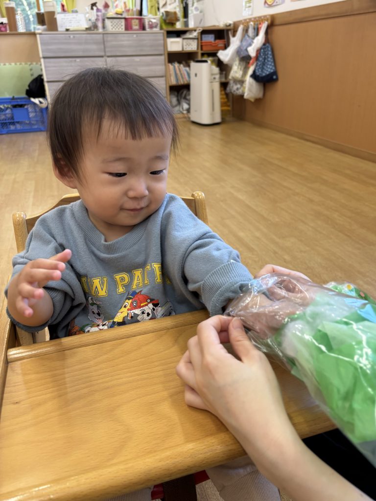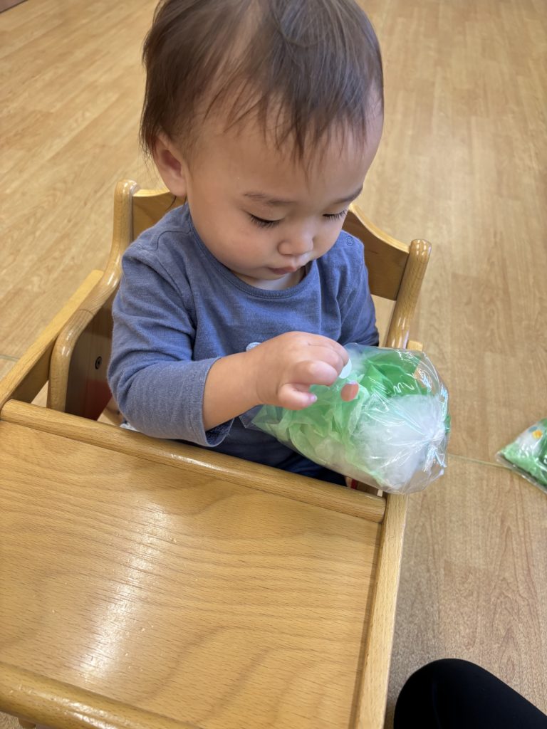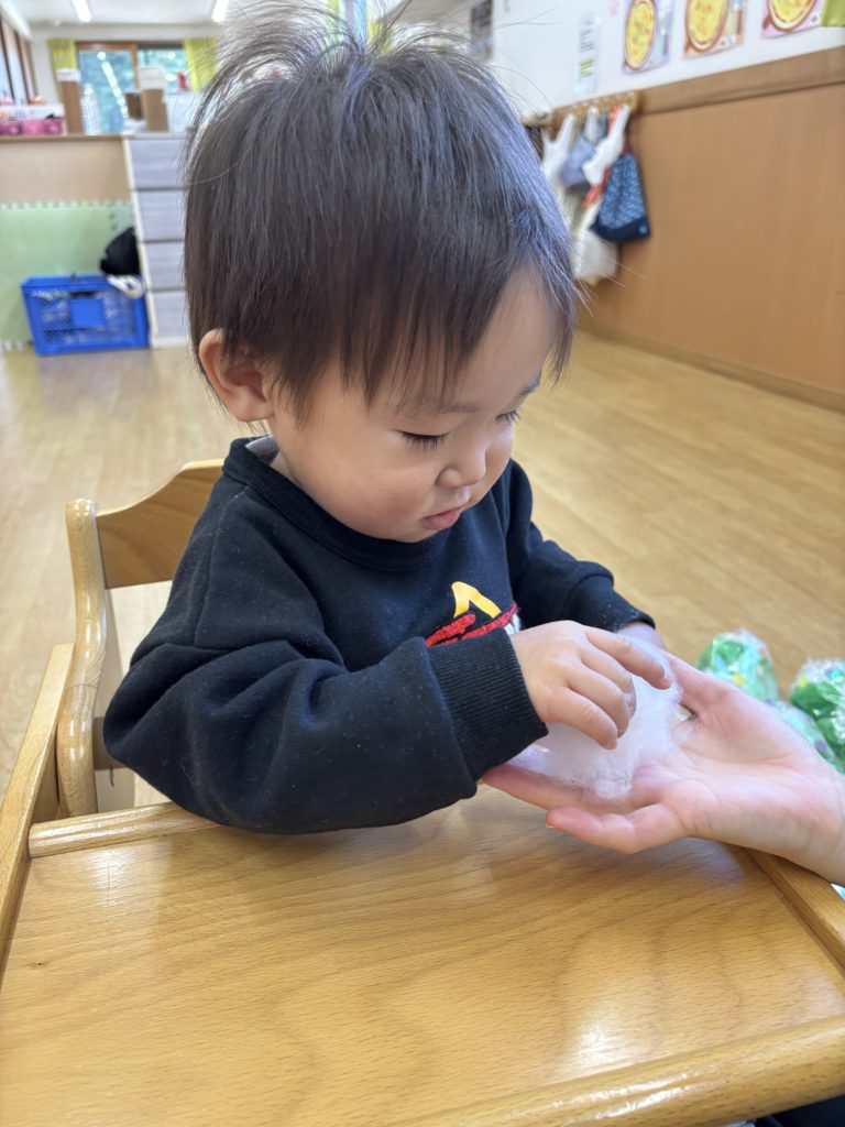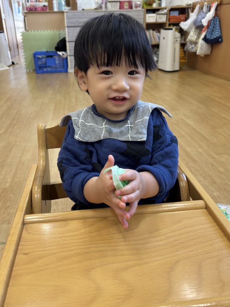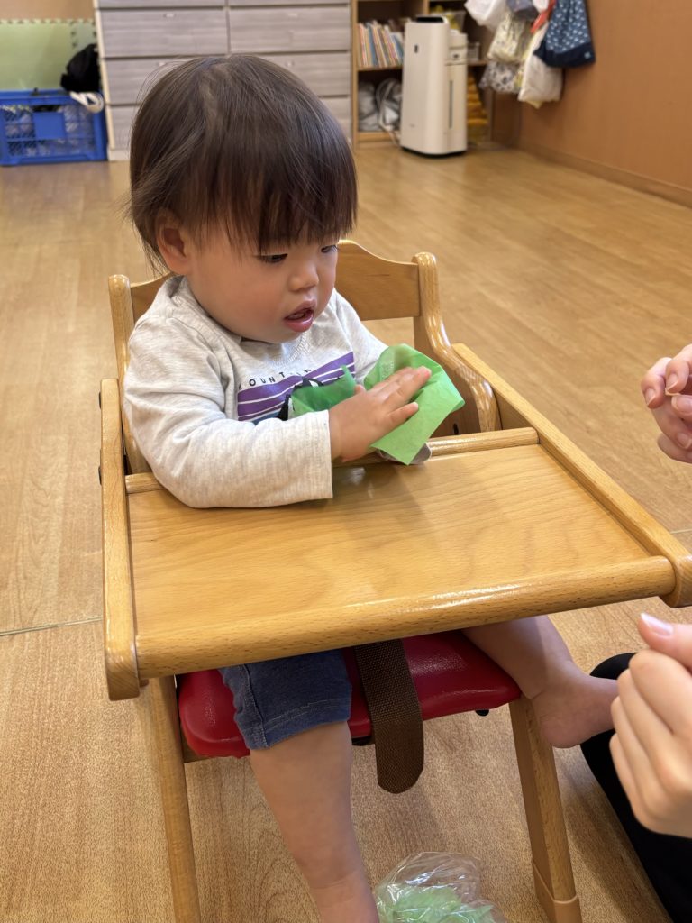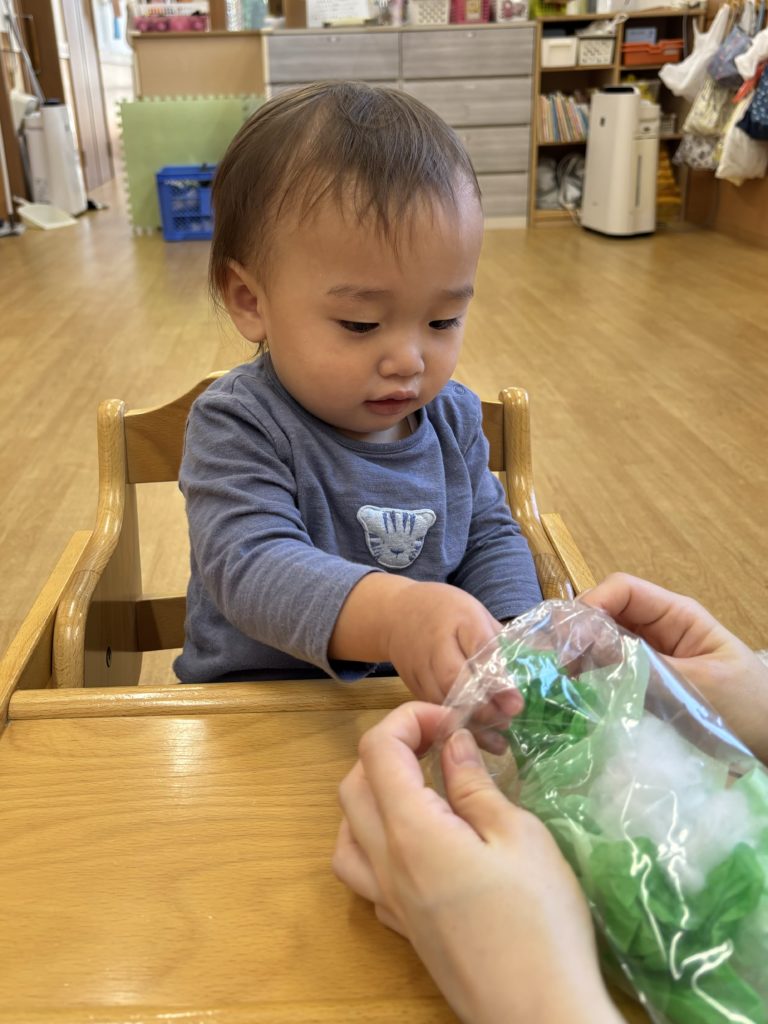 くしゃくしゃがうまくできず手をすりすりしている子もいて夢中になる姿がとても愛らしかったです💕