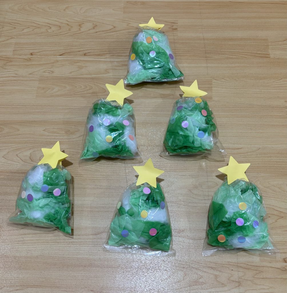 そして、余った花紙を使ってみんなでひと回り大きいクリスマスツリーも作りました😊