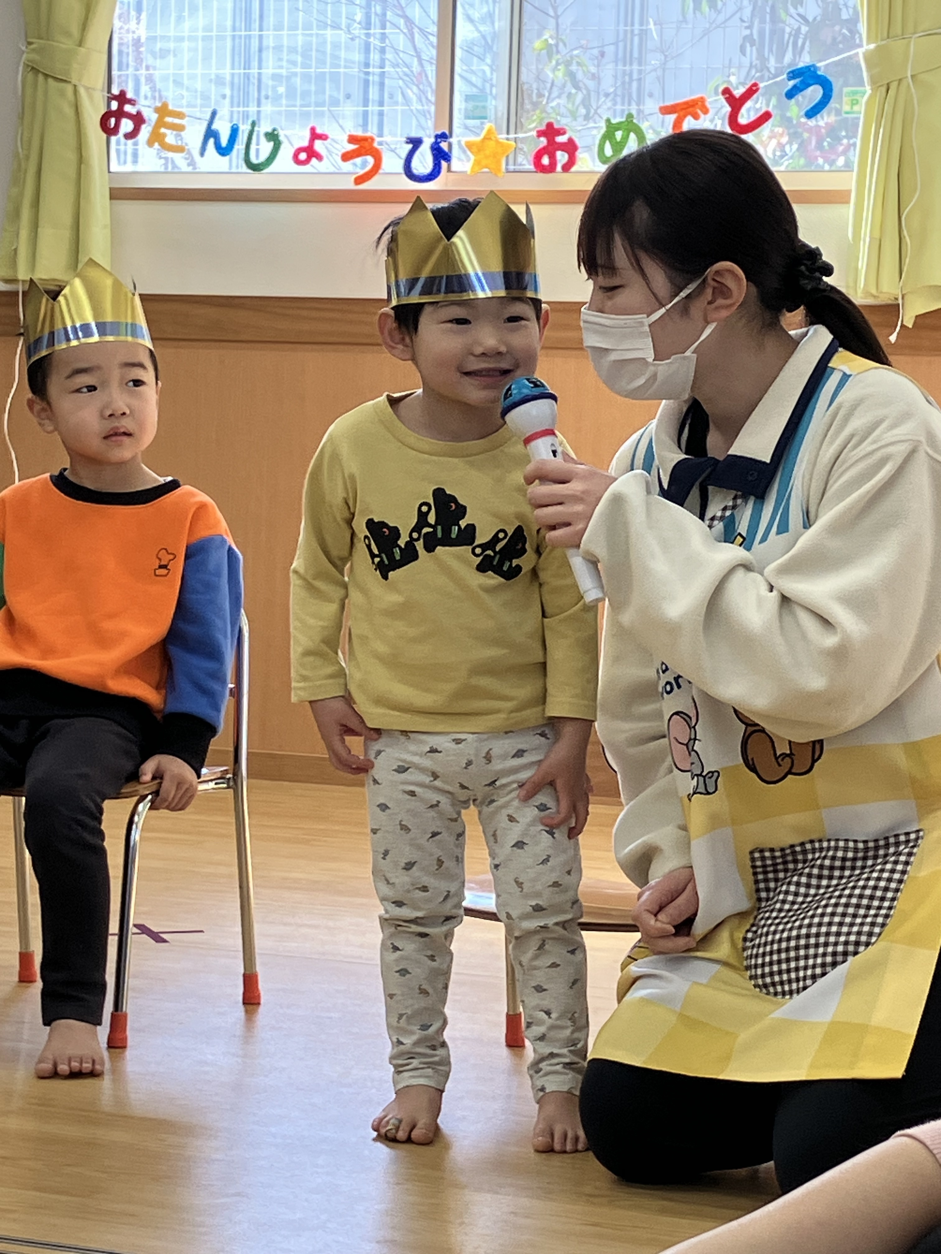 みんなの前に出ると、ちょっぴりドキドキした様子もみられましたが、歌や拍手でお祝いしてもらい嬉しそうな表情を浮かべていました☀️