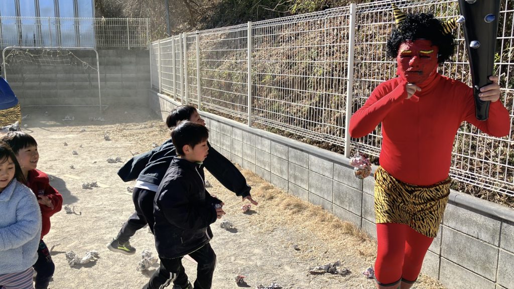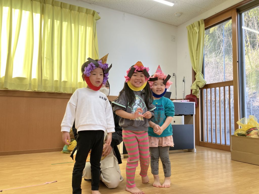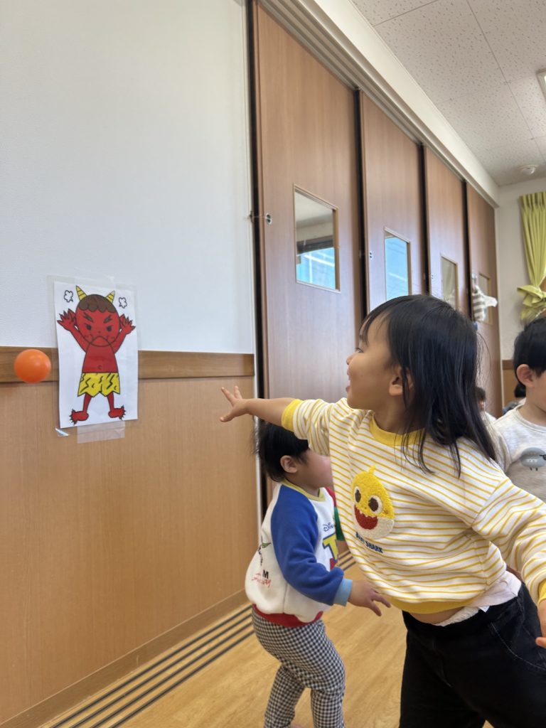 鬼が怖くて泣いてしまう子もいましたが、怖がりながらも「鬼は外!福は内!」と声を出して鬼を追い払うことができました✨