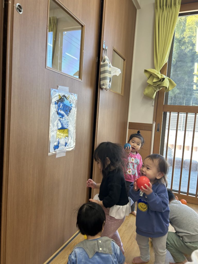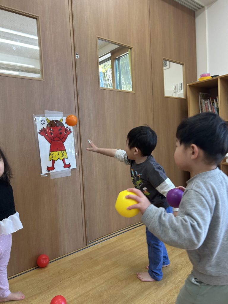 最後には乳児クラス、幼児クラスに分かれて豆まきもしました!