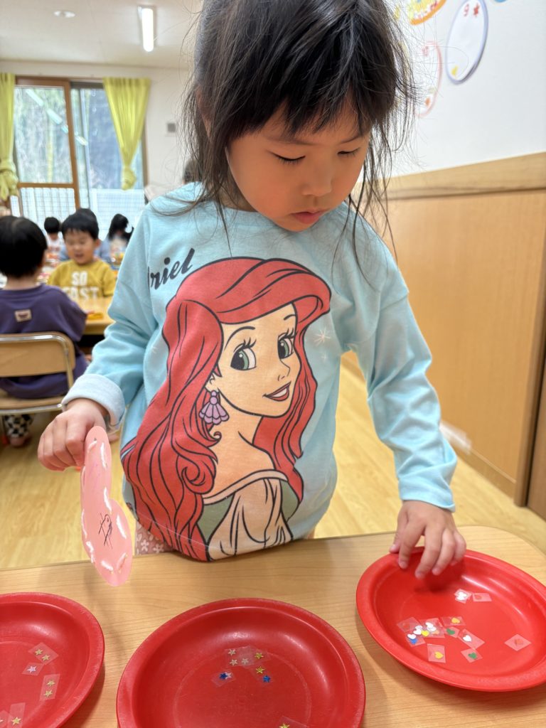 最後に、シールのデコレーション✨ハートや星のシールを自分たちで選びオリジナルの作品が完成しました!