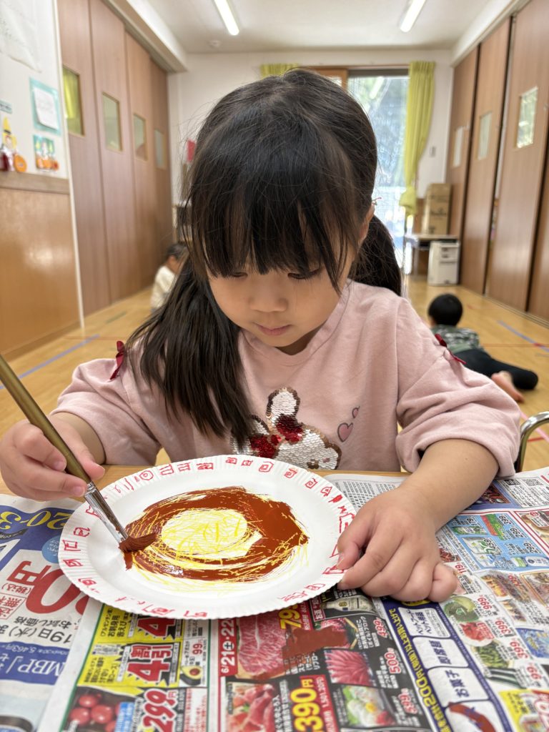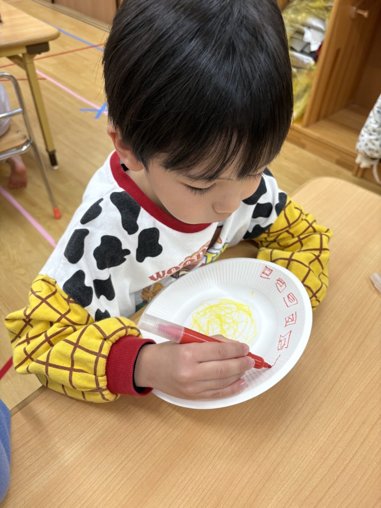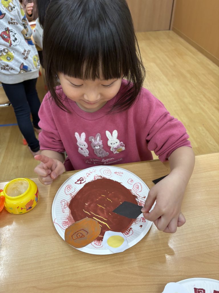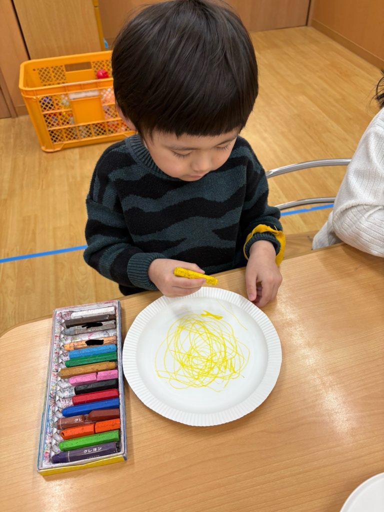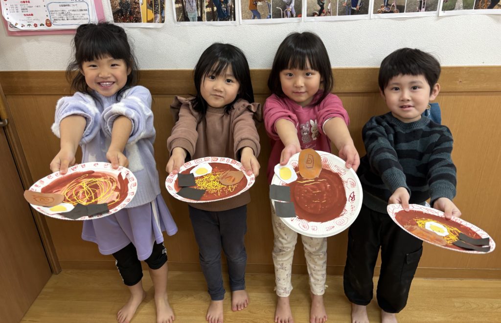 温かいものが食べたくなるこの時期に、いるか組ではラーメン作りをしました。お皿にクレヨンで麺を乗せ、スープを入れて具材をトッピング!美味しそうなラーメンが完成しました🍜❤️