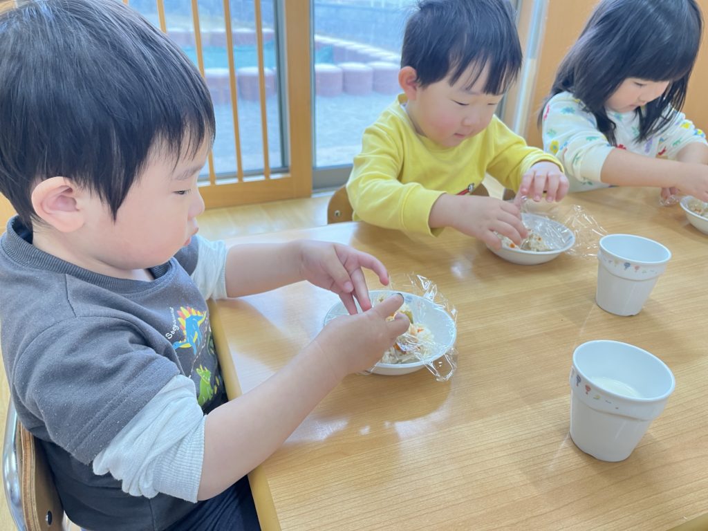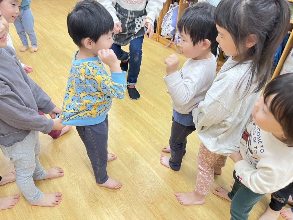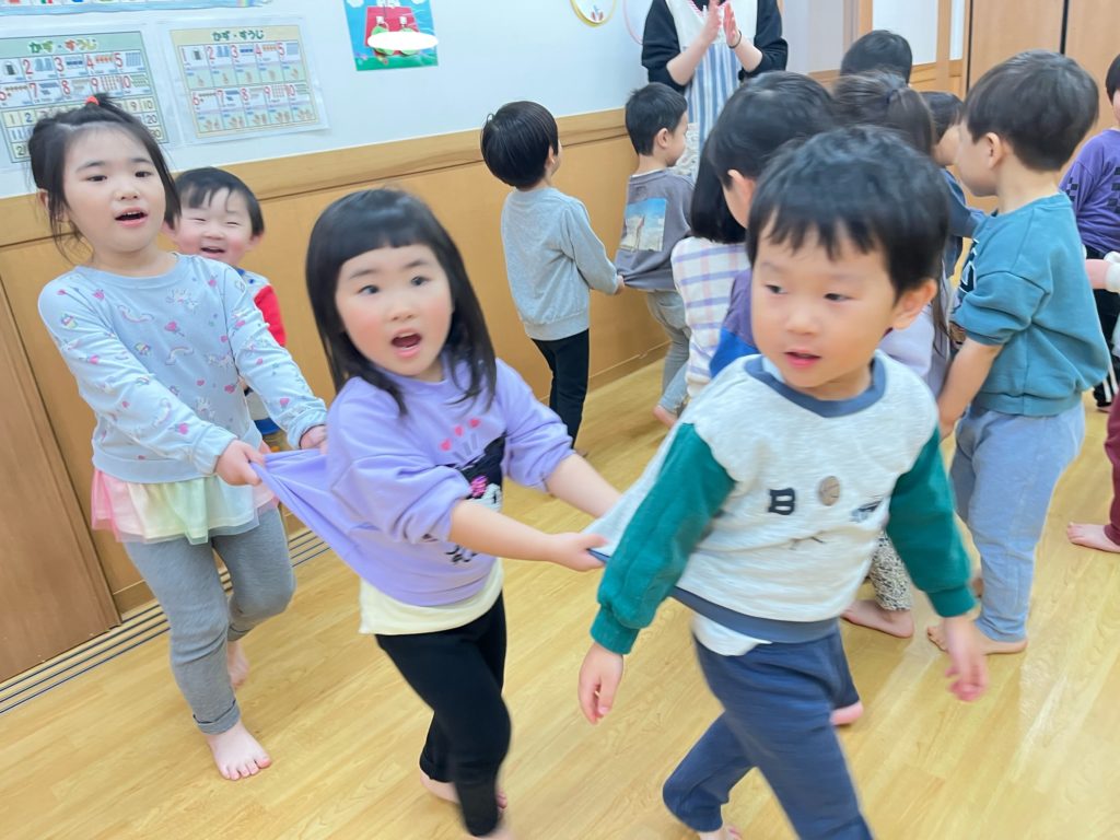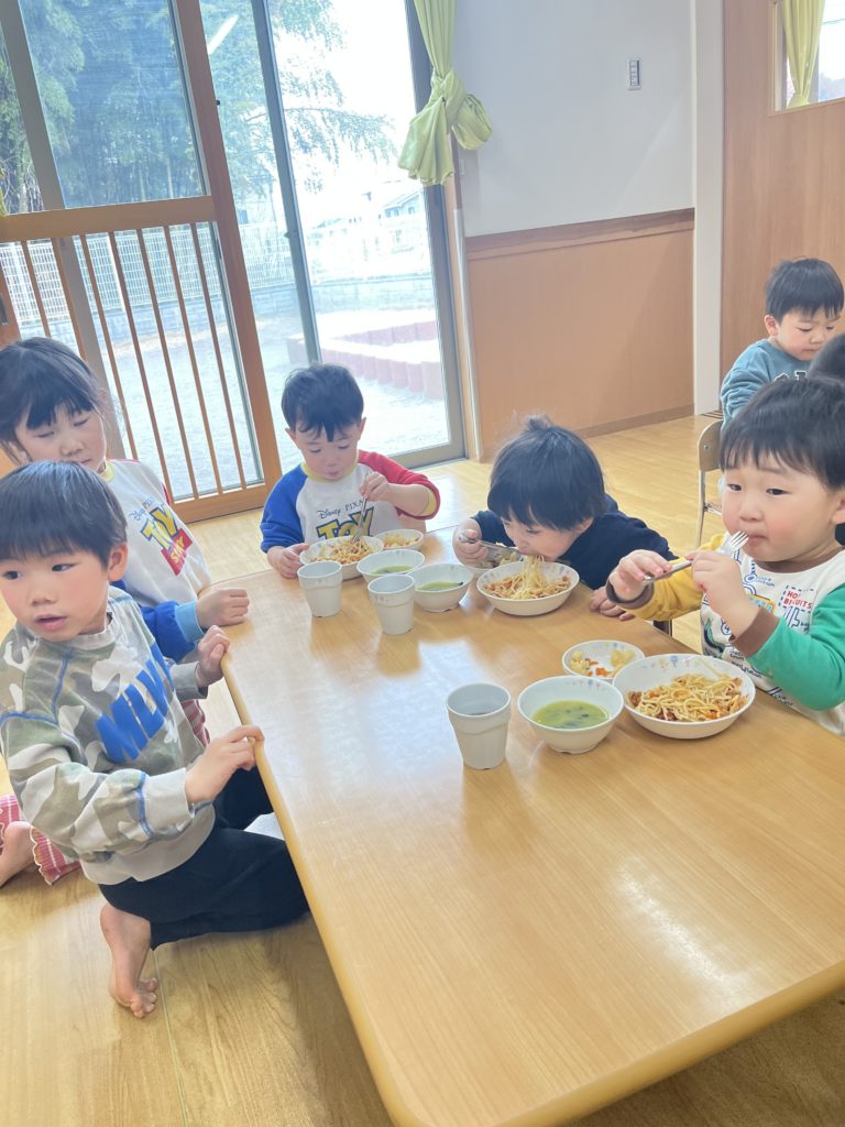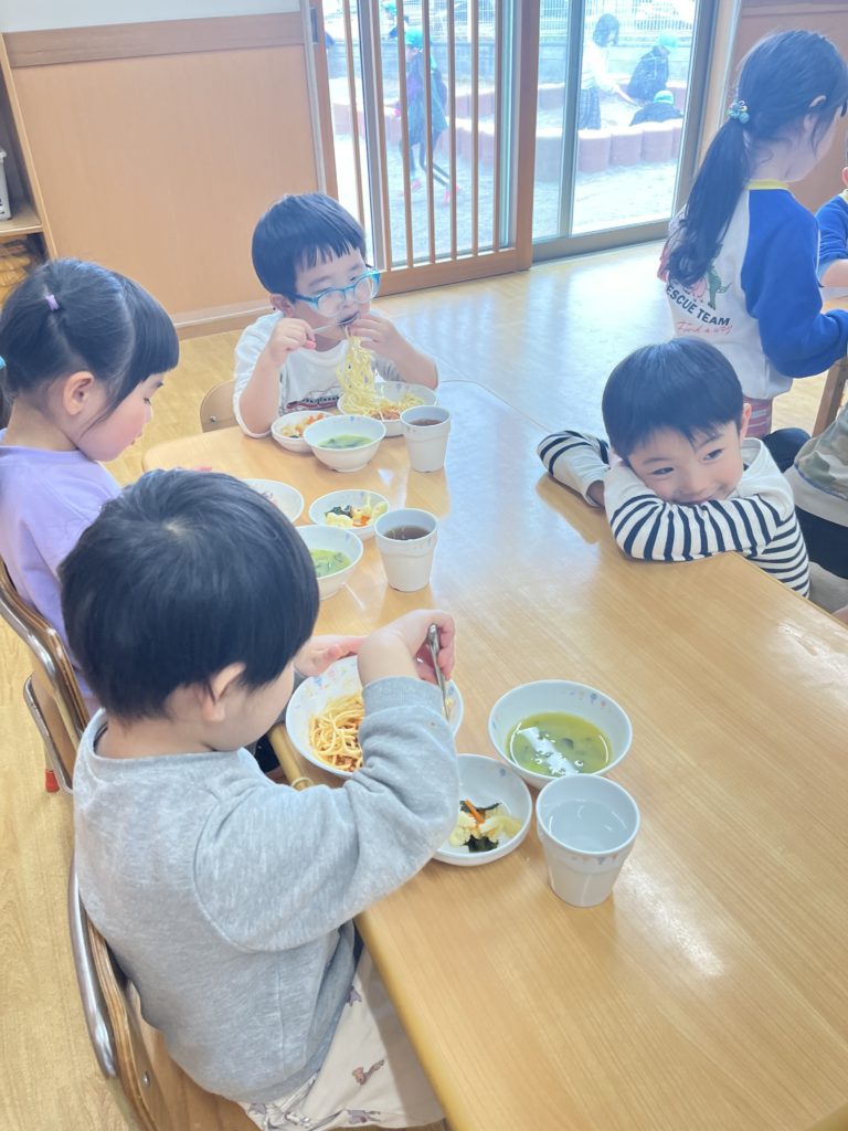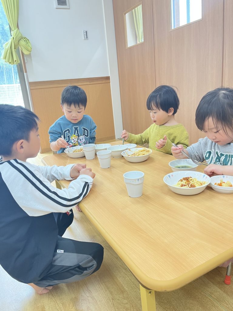 今日はくじら組登園最終日。 かもめ・いるか・くじら組でお部屋の中で、ゲーム遊びを楽しみました🎵その後は、みんなで給食を食べました🍴普段あまりお話をする機会のないお友達と楽しく食べることができました