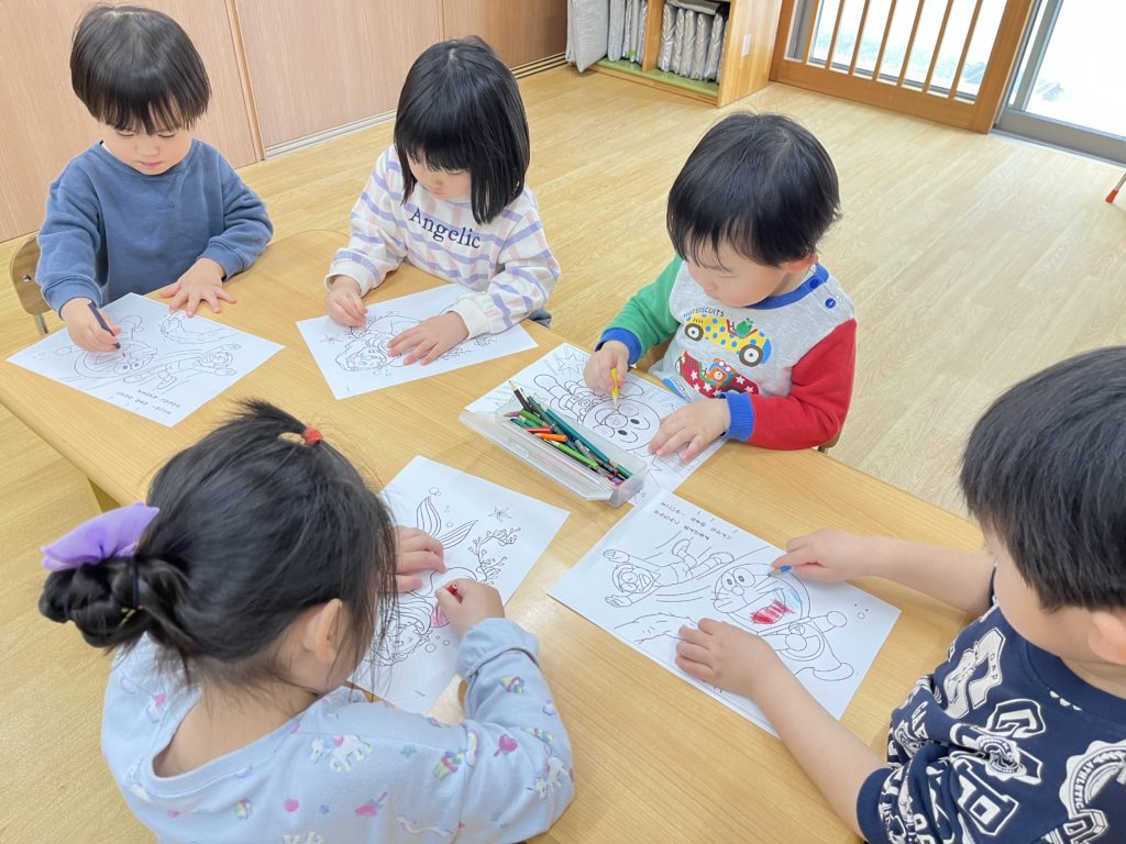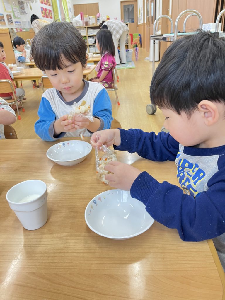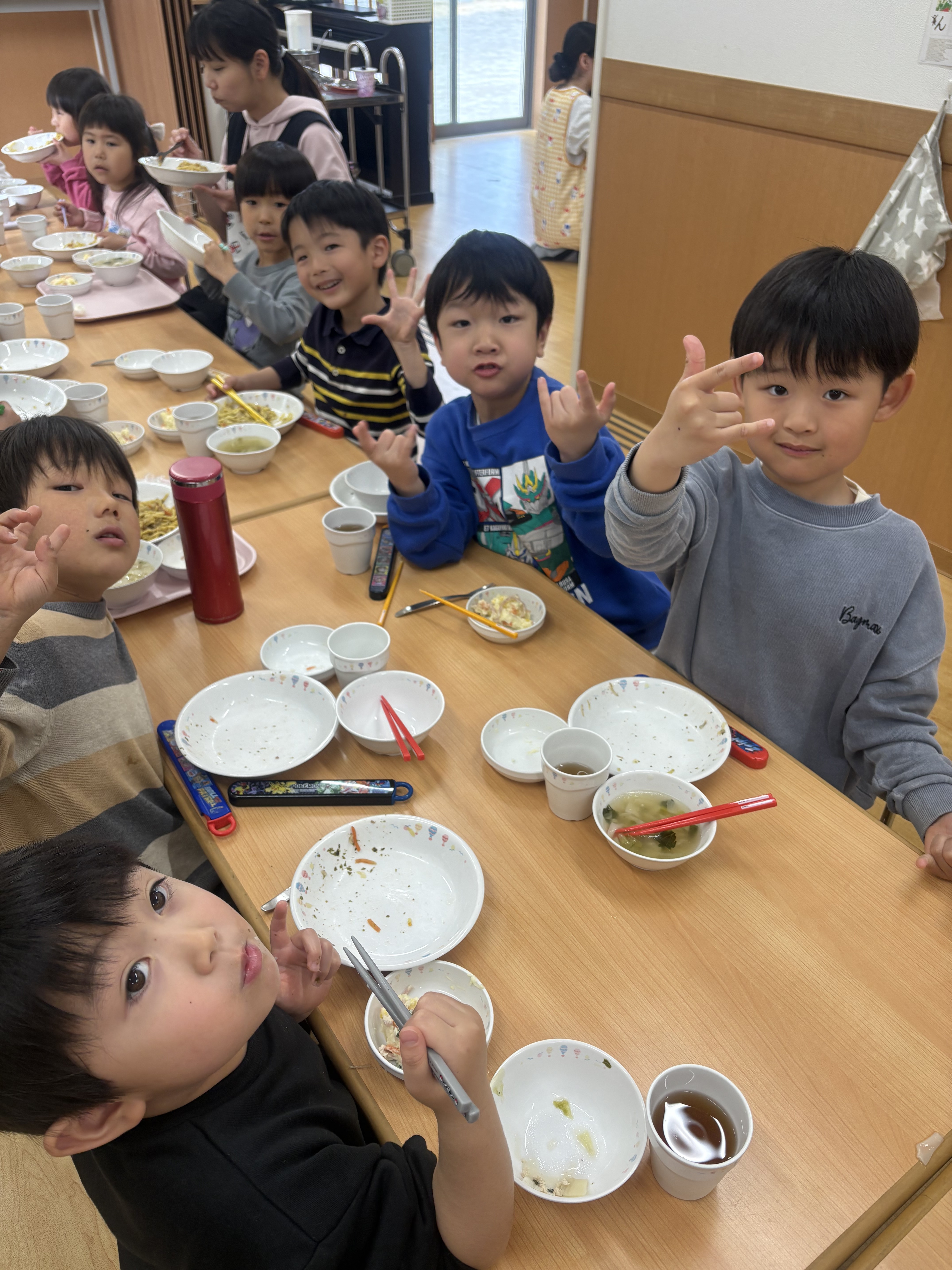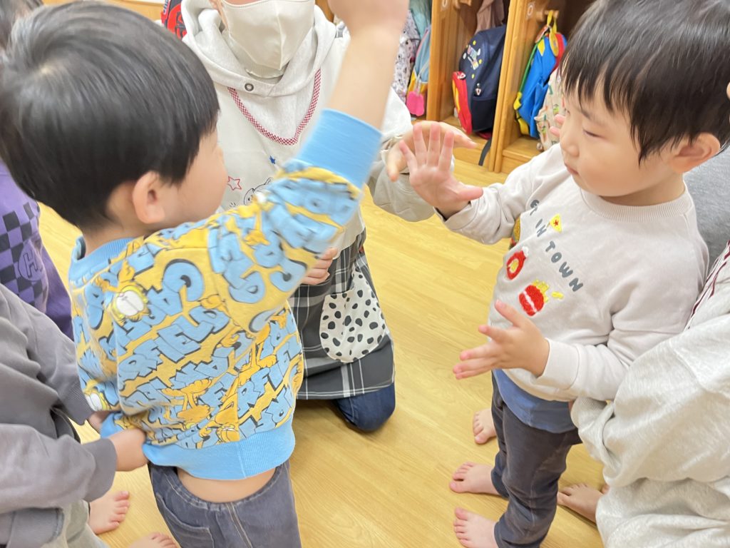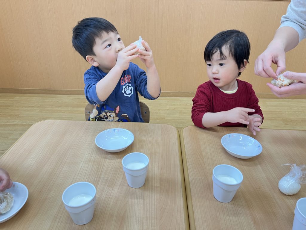 今日はくじら組登園最終日。 かもめ・いるか・くじら組でお部屋の中で、ゲーム遊びを楽しみました🎵その後は、みんなで給食を食べました🍴普段あまりお話をする機会のないお友達と楽しく食べることができました
