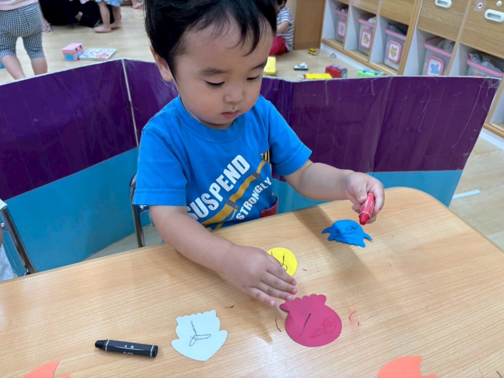 あざらし組の部屋を覗いてみると…夏の製作中。