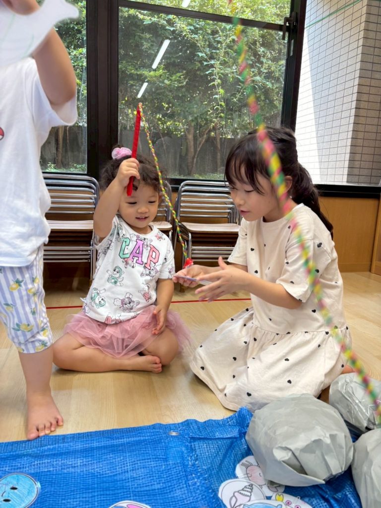 今日はお友だちや先生と夏祭りごっこ。