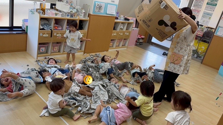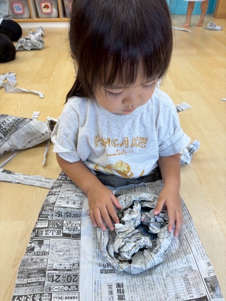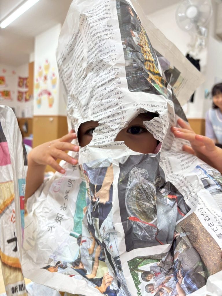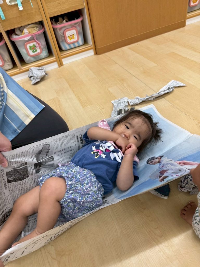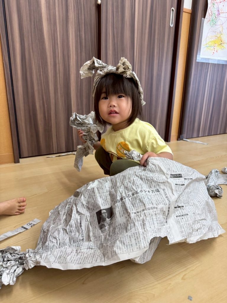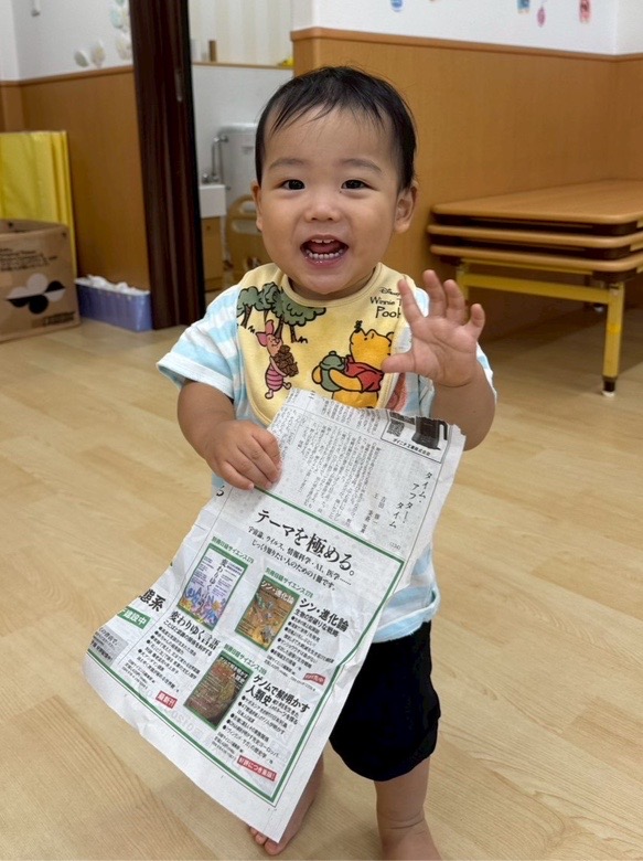 お友だちの前に出て来たのは、新聞紙。