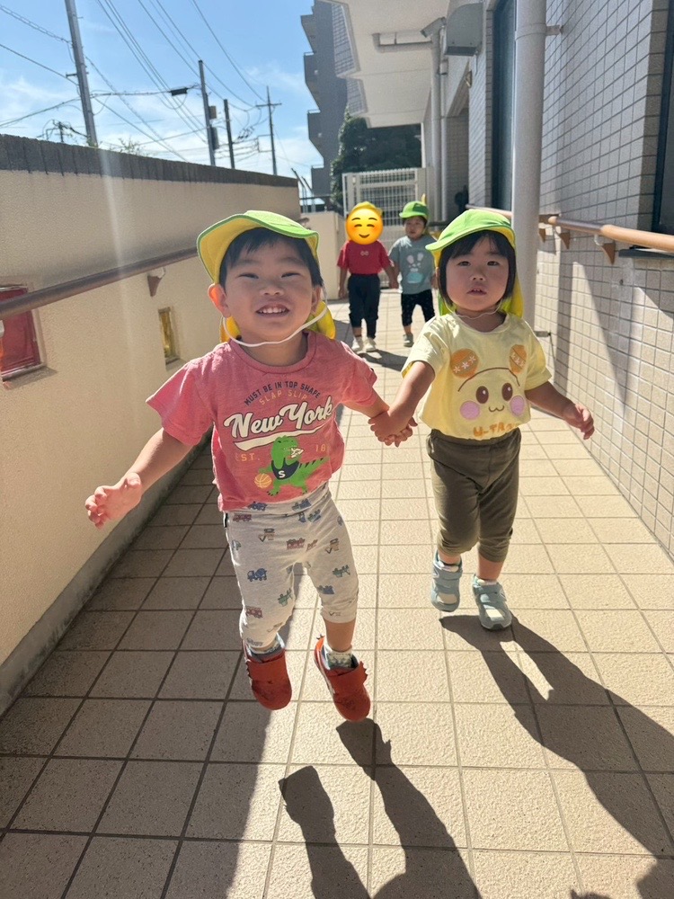 お友だちと手を繋いで、しゅっぱーつ!