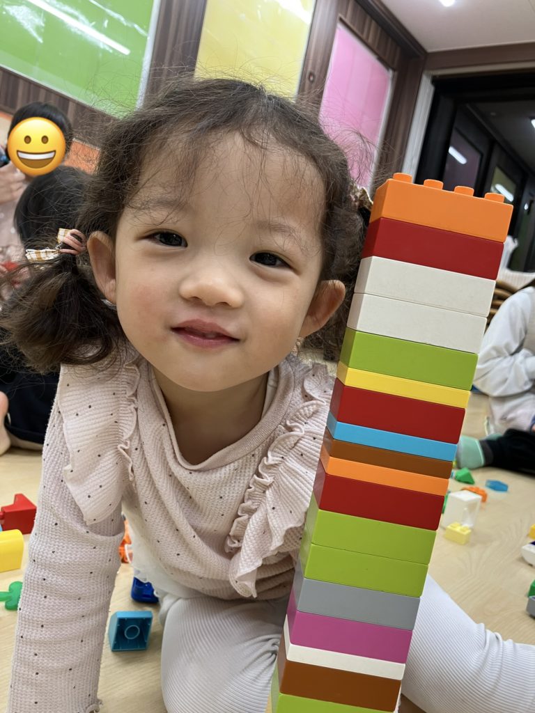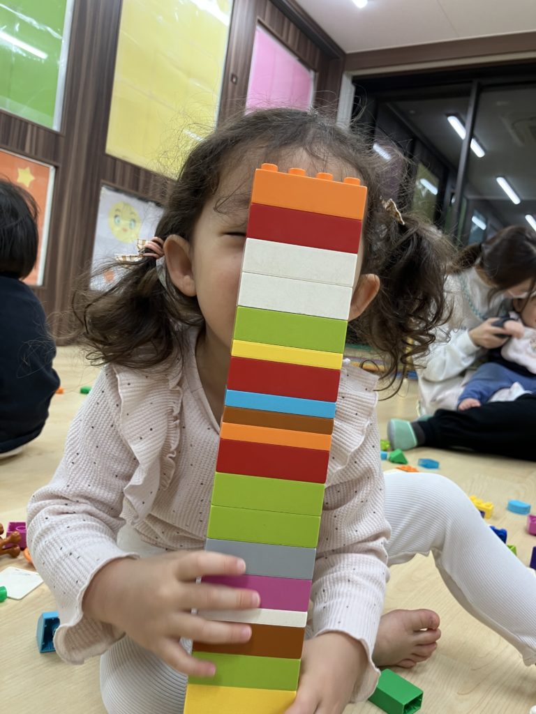 ブロックを高く積んだよ。