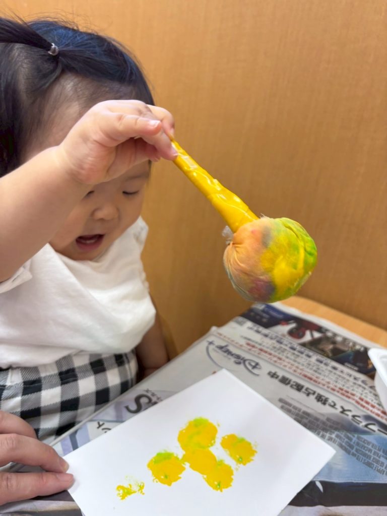 絵の具をつけてペタペタ。