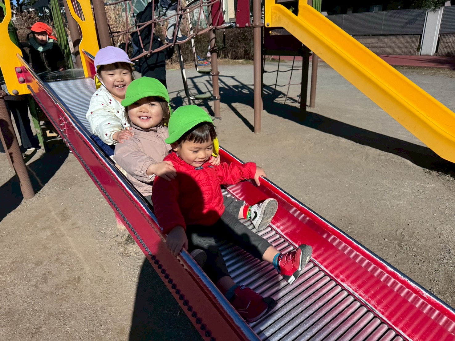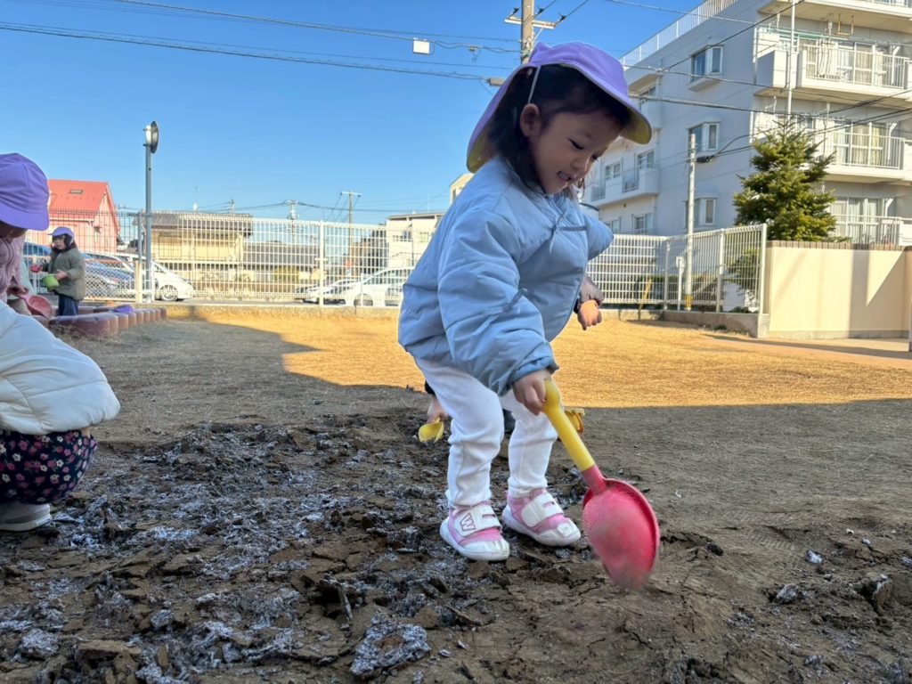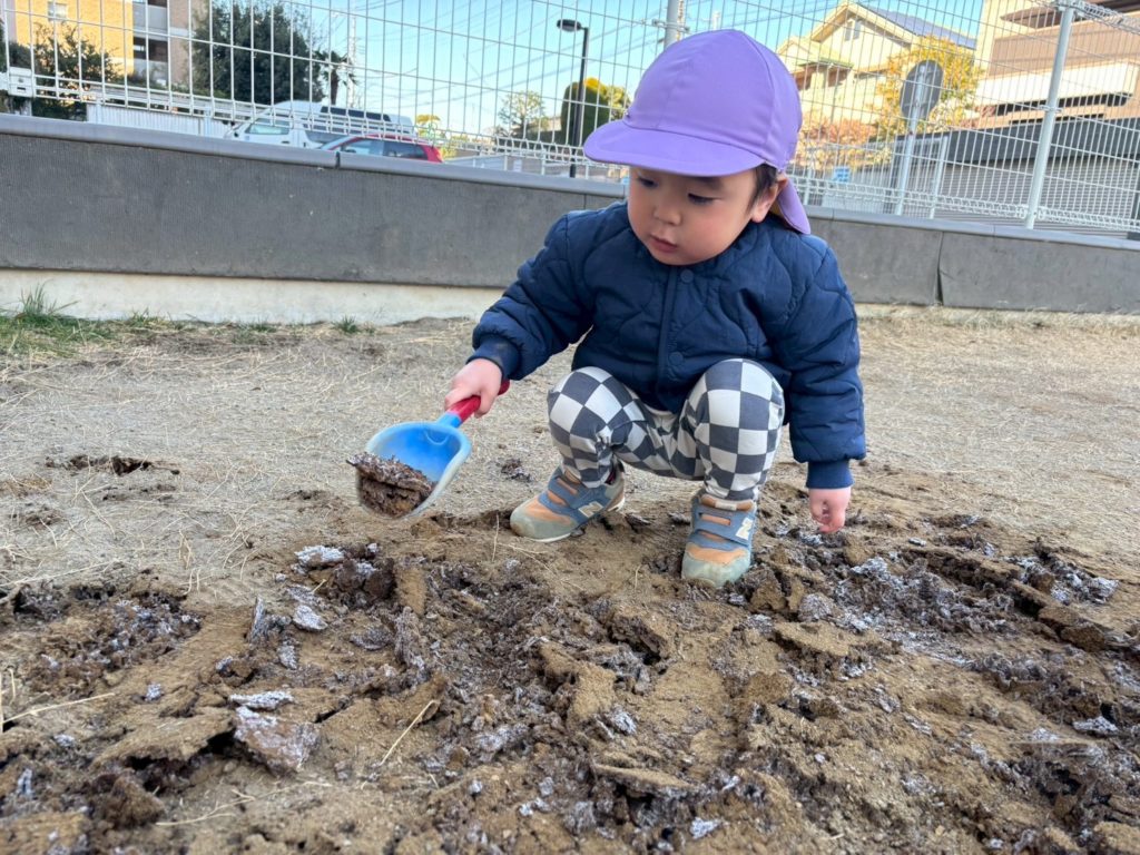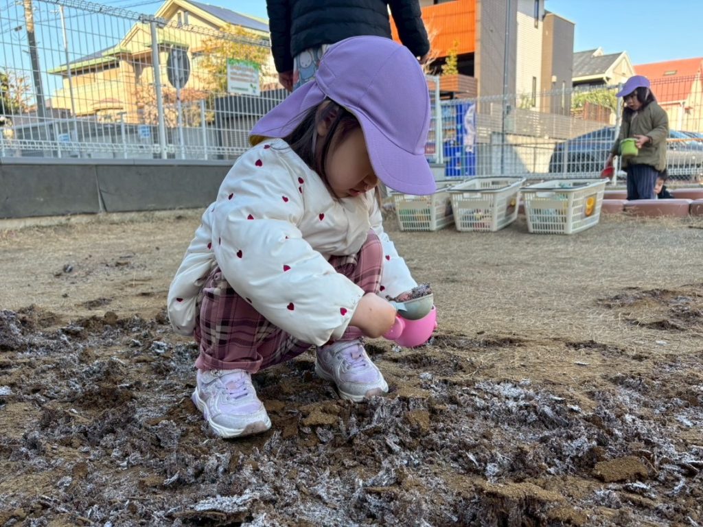 園庭を歩くと…ザクザク
