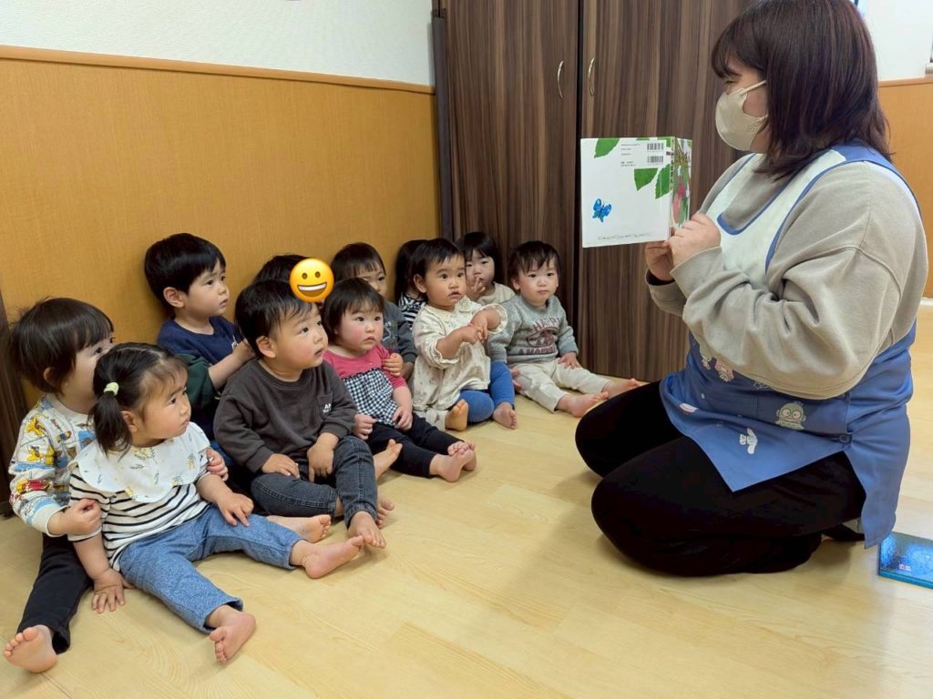 ぺんぎん組・らっこ組のお友だち一緒に絵本タイム。