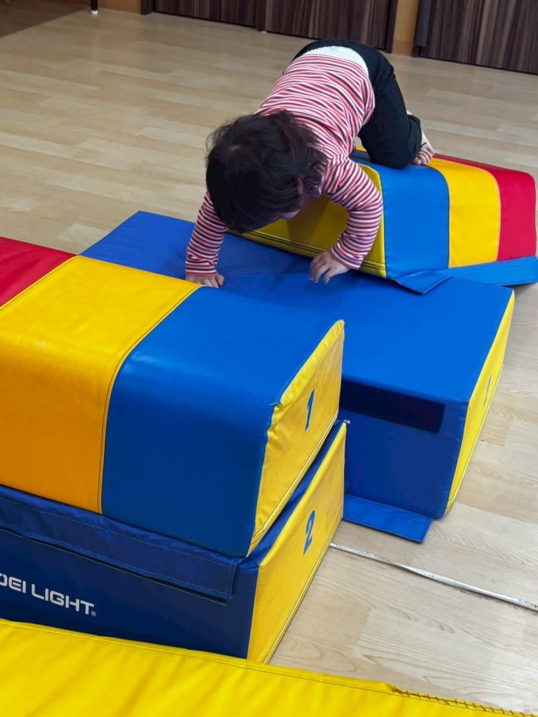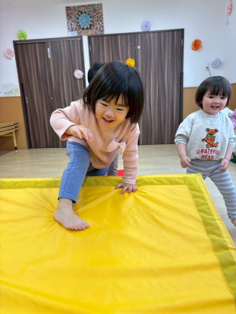 ぺんぎん組のお友だちは、跳び箱やマットがパワーアップ!